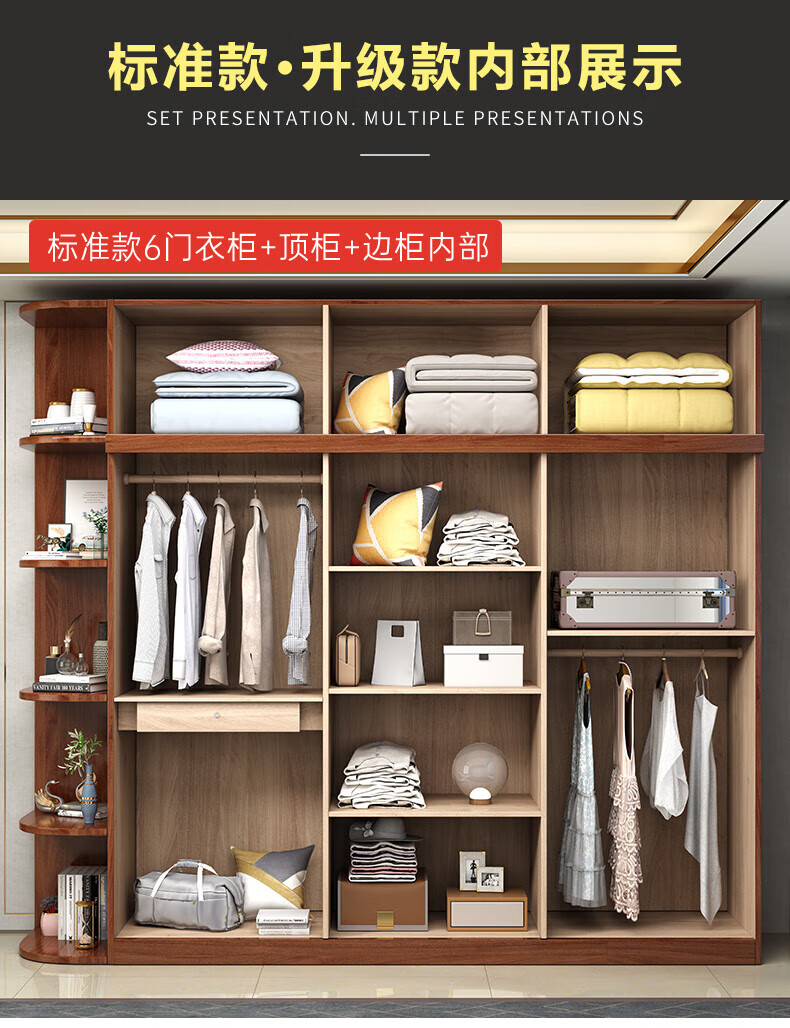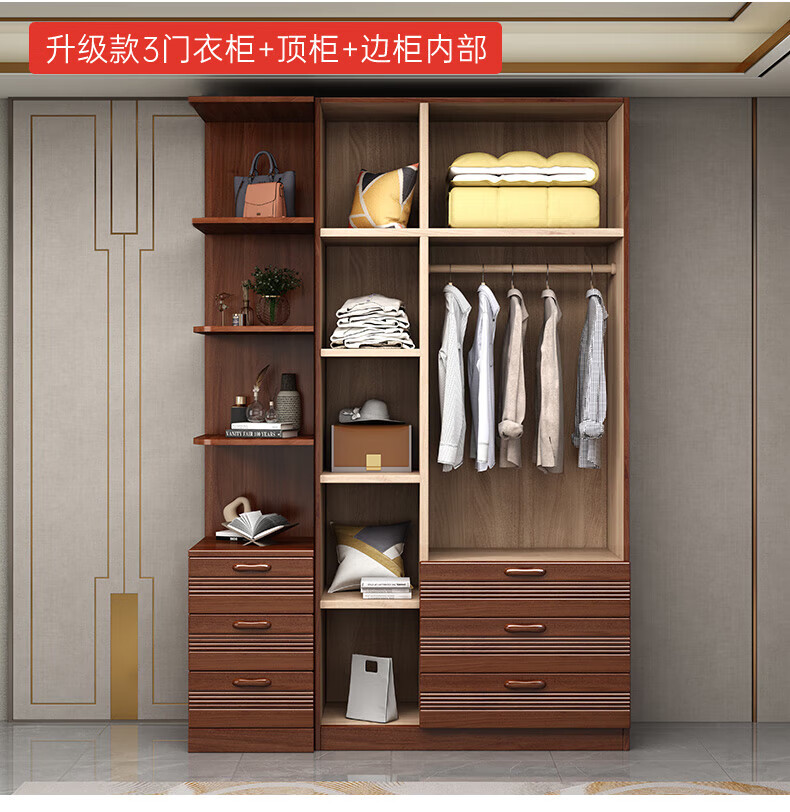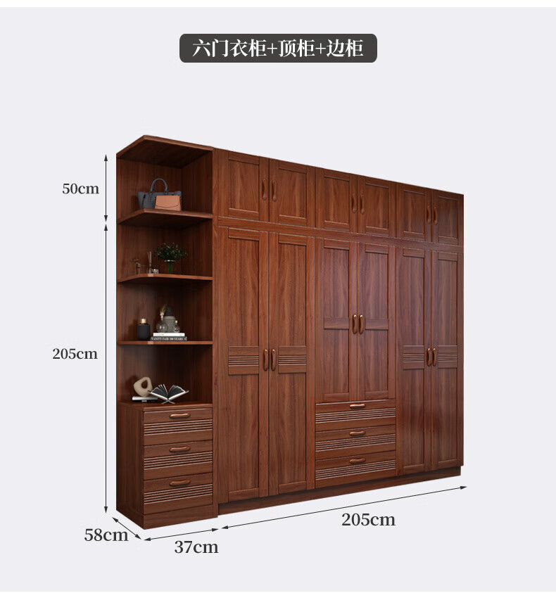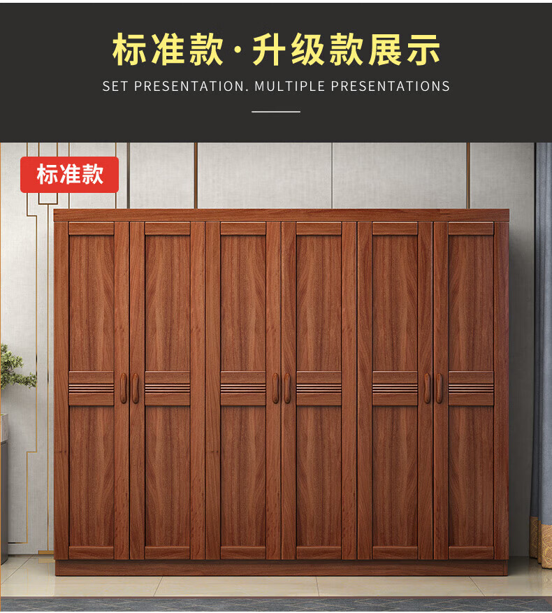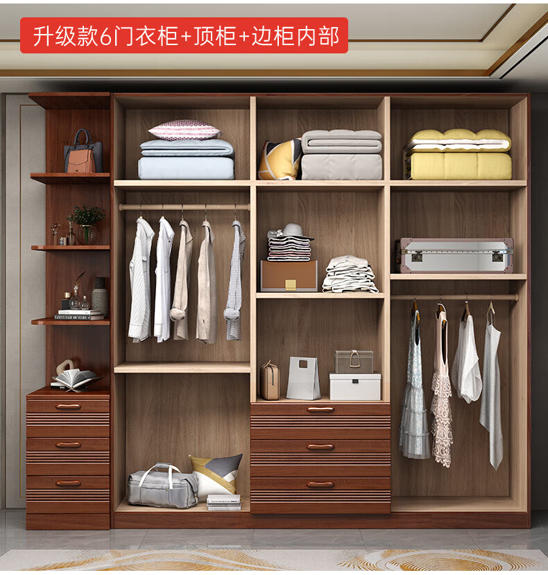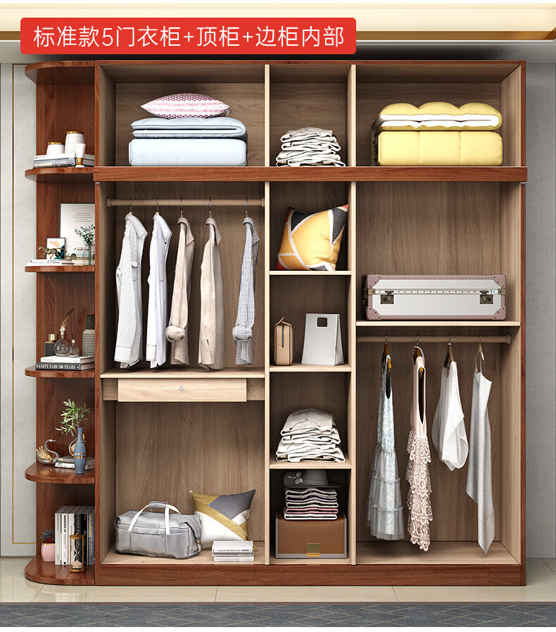 Millennium Shengshi Solid Wood Wardrobe Golden Wire Walnut Wardrobe Bedroom Cabinet Modern Chinese Wardrobe Corner Storage Cabinet Bedroom Furniture Five Doors + Top Cabinet Standard Model Does Not Exclude Center Drawer