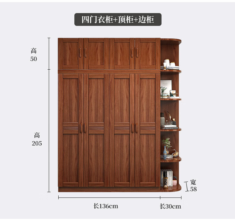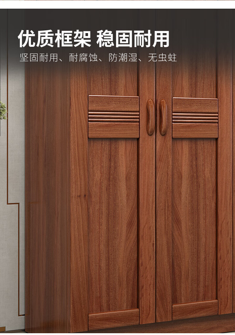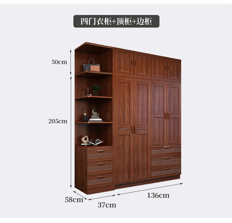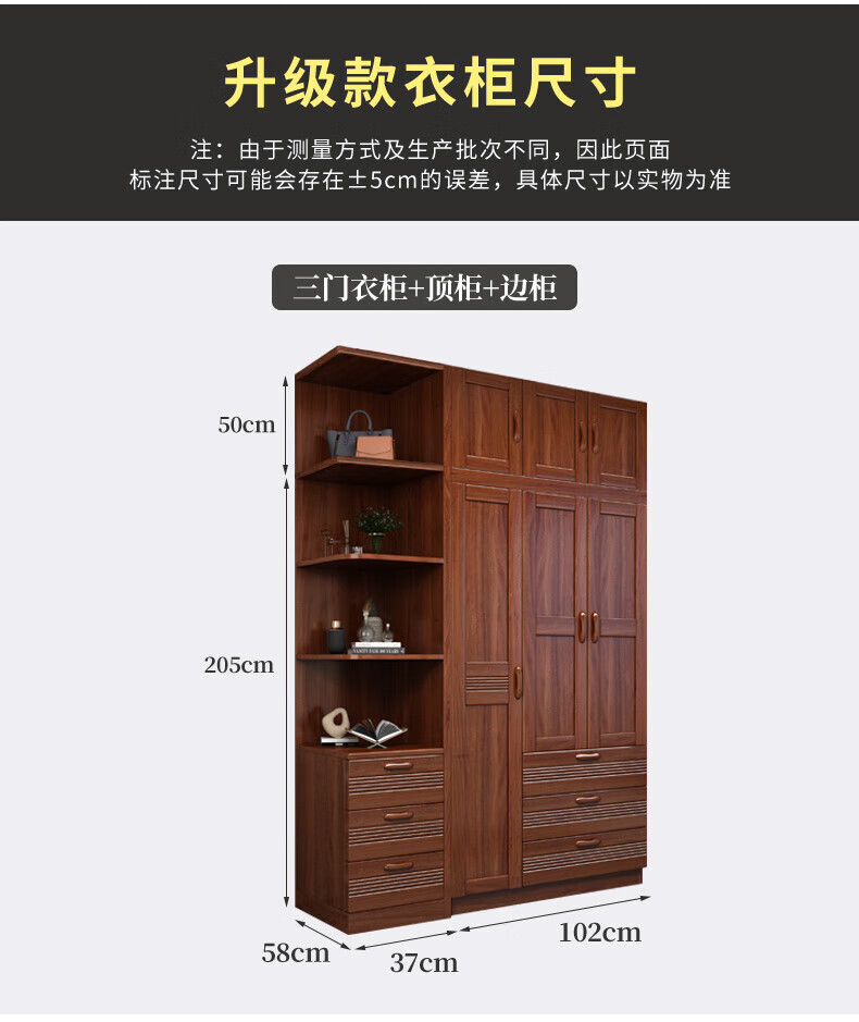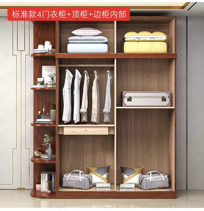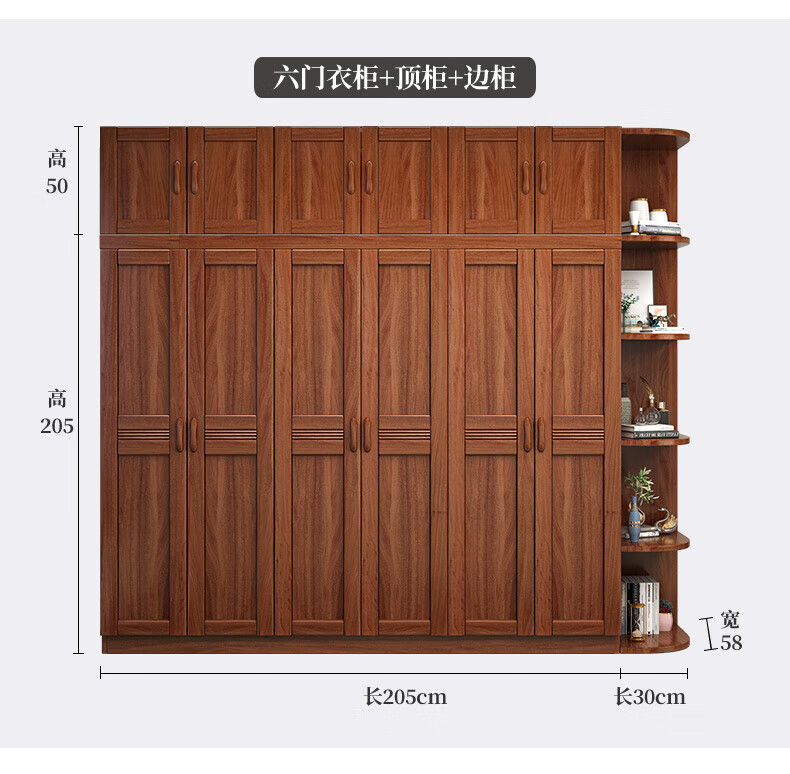 Millennium Shengshi Solid Wood Wardrobe Golden Wire Walnut Wardrobe Bedroom Cabinet Modern Chinese Wardrobe Corner Storage Cabinet Bedroom Furniture Five Doors + Top Cabinet Standard Model Does Not Exclude Center Drawer