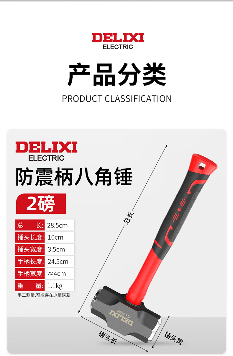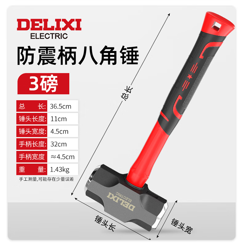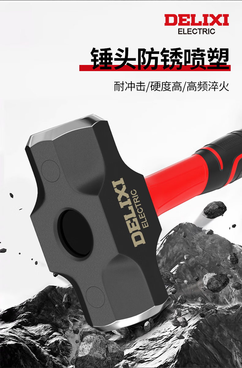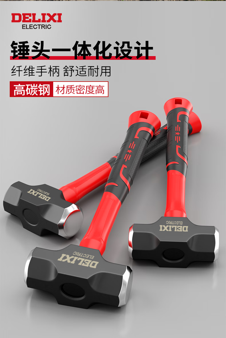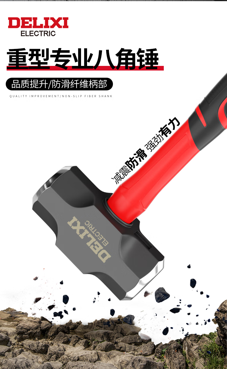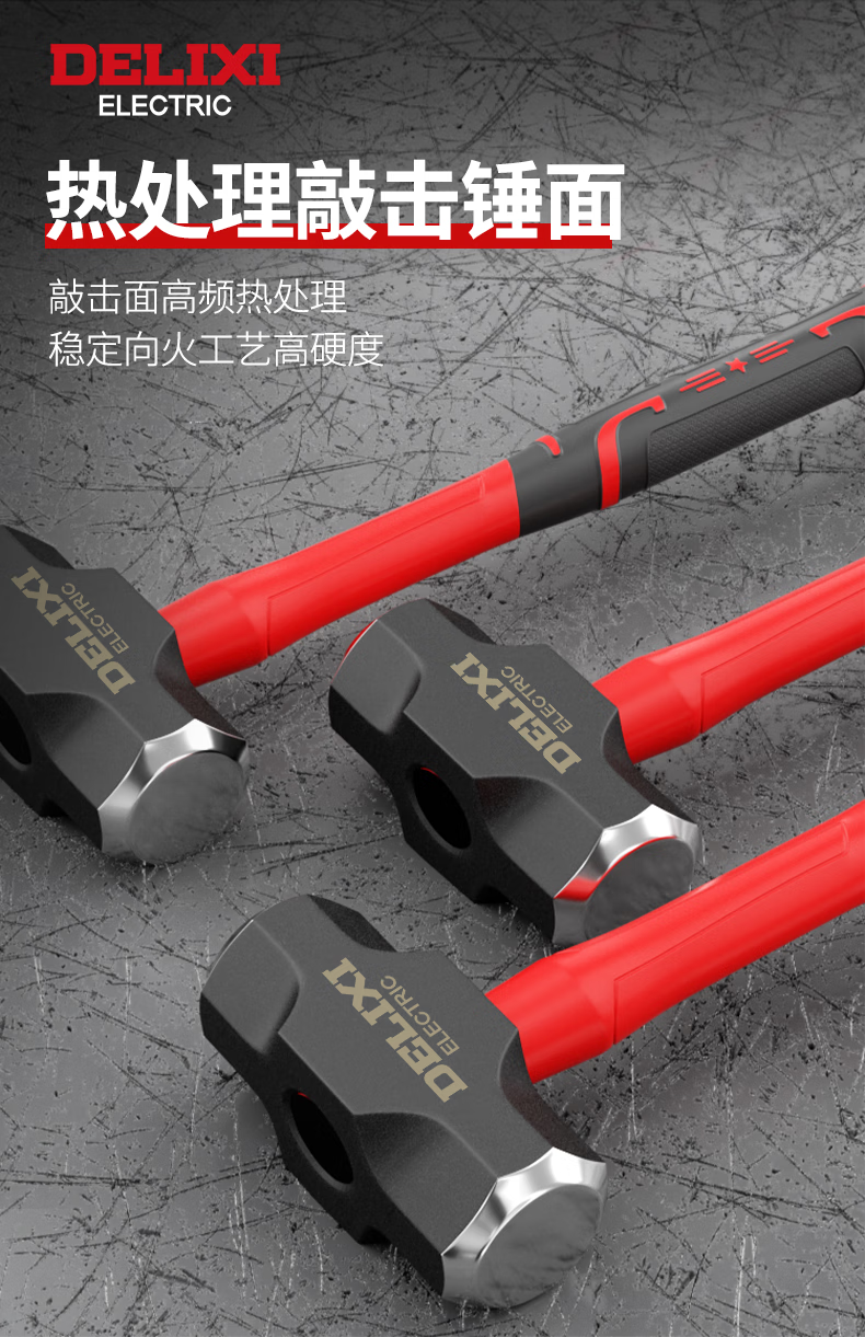 Delixi Electric Hammer Octagonal Hammer Tool Rubber Handle Hammer Soft Handle High Carbon Steel Solid One-piece Large Wall-Smashing Hammer 6 lbs. TPR Handle Octagonal Hammer (High Flexibility)