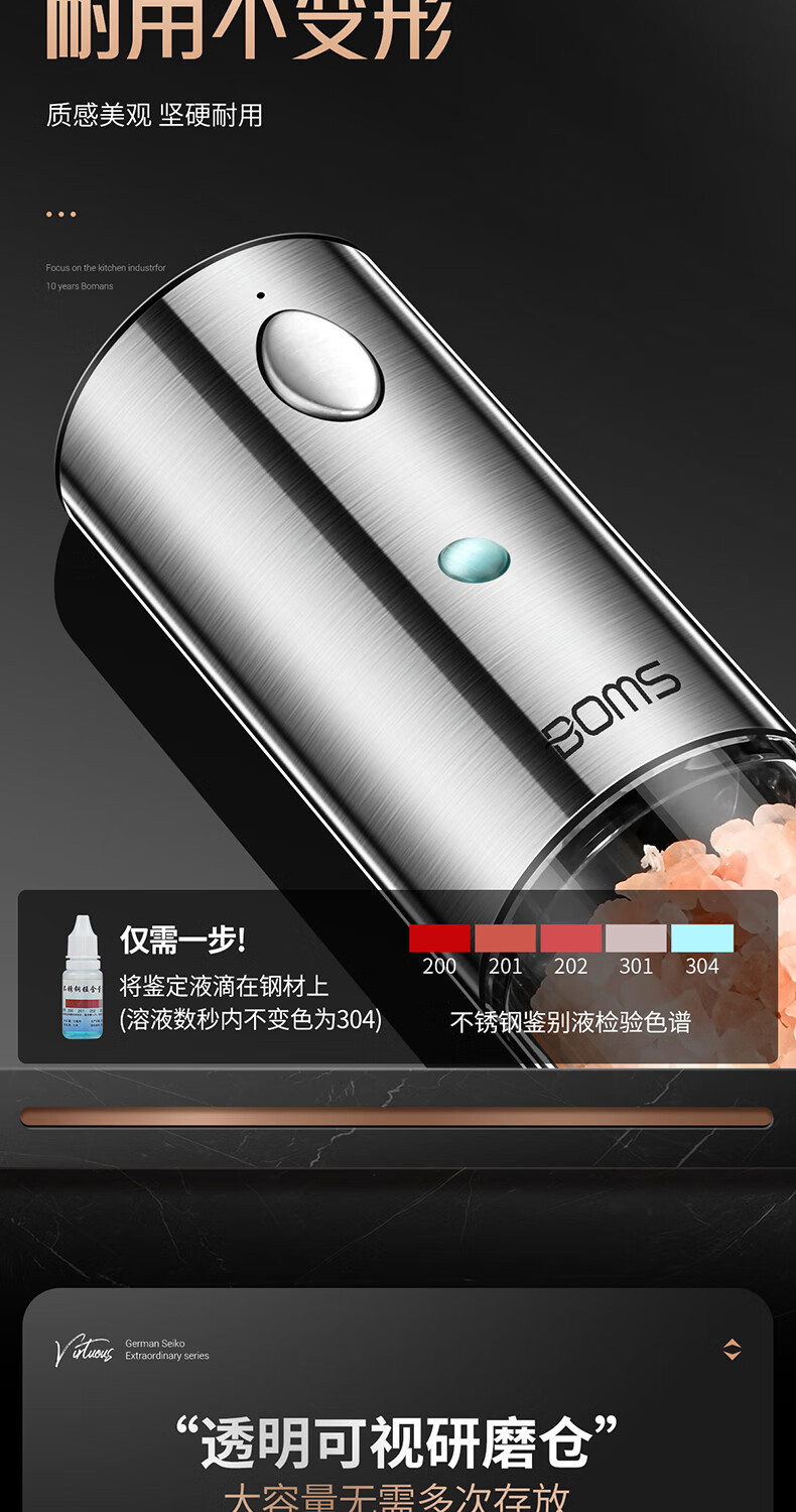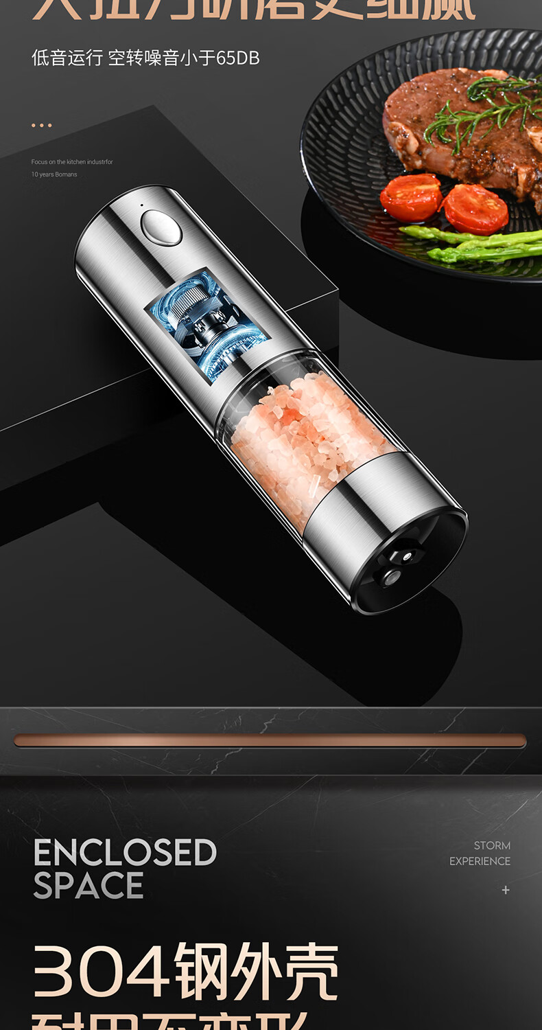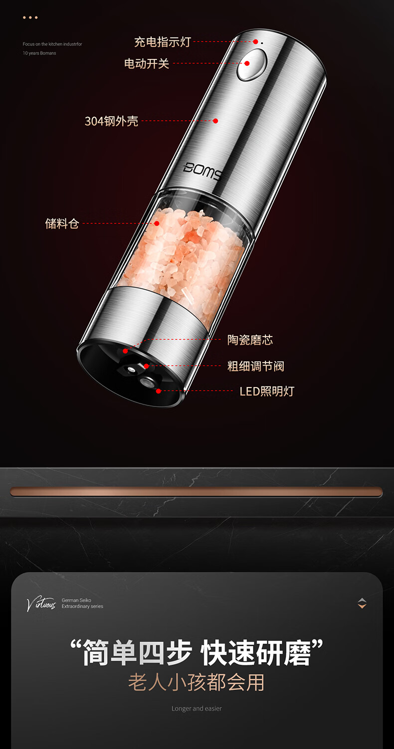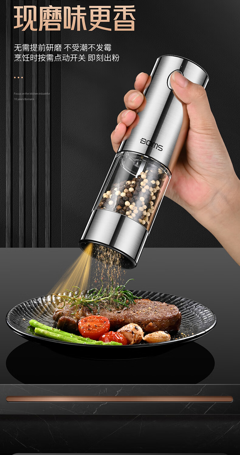 Bomans Electric Pepper Grinder Home External Adjustment Sichuan Pepper Sea Salt Electric Grinder Kitchen Pepper Grinding Bottle Jar Electric Grinder (Type-C Rechargeable Model)