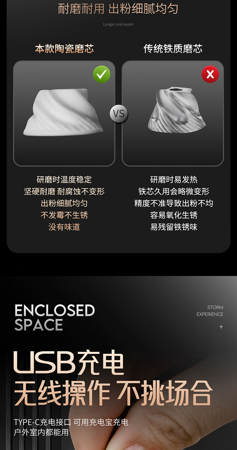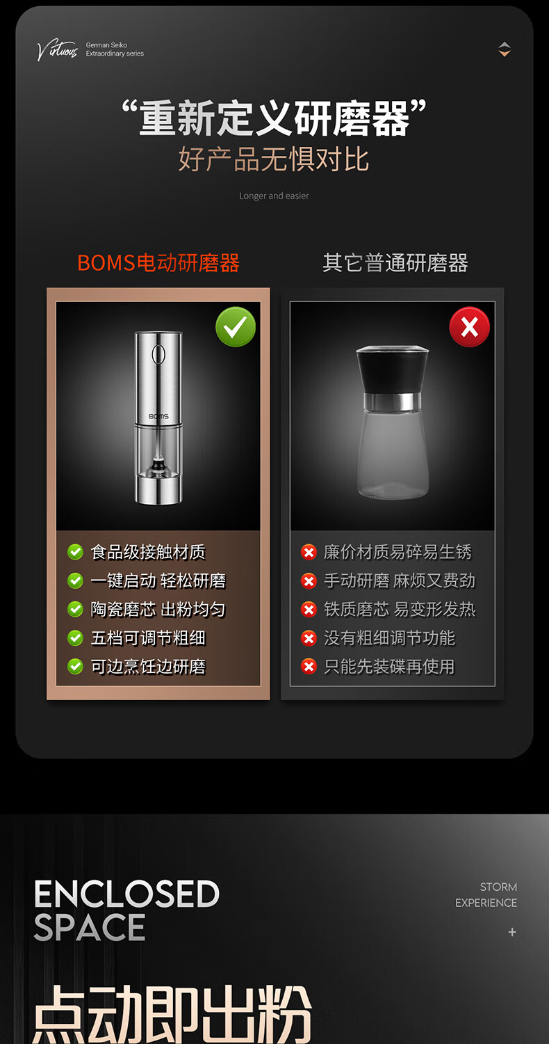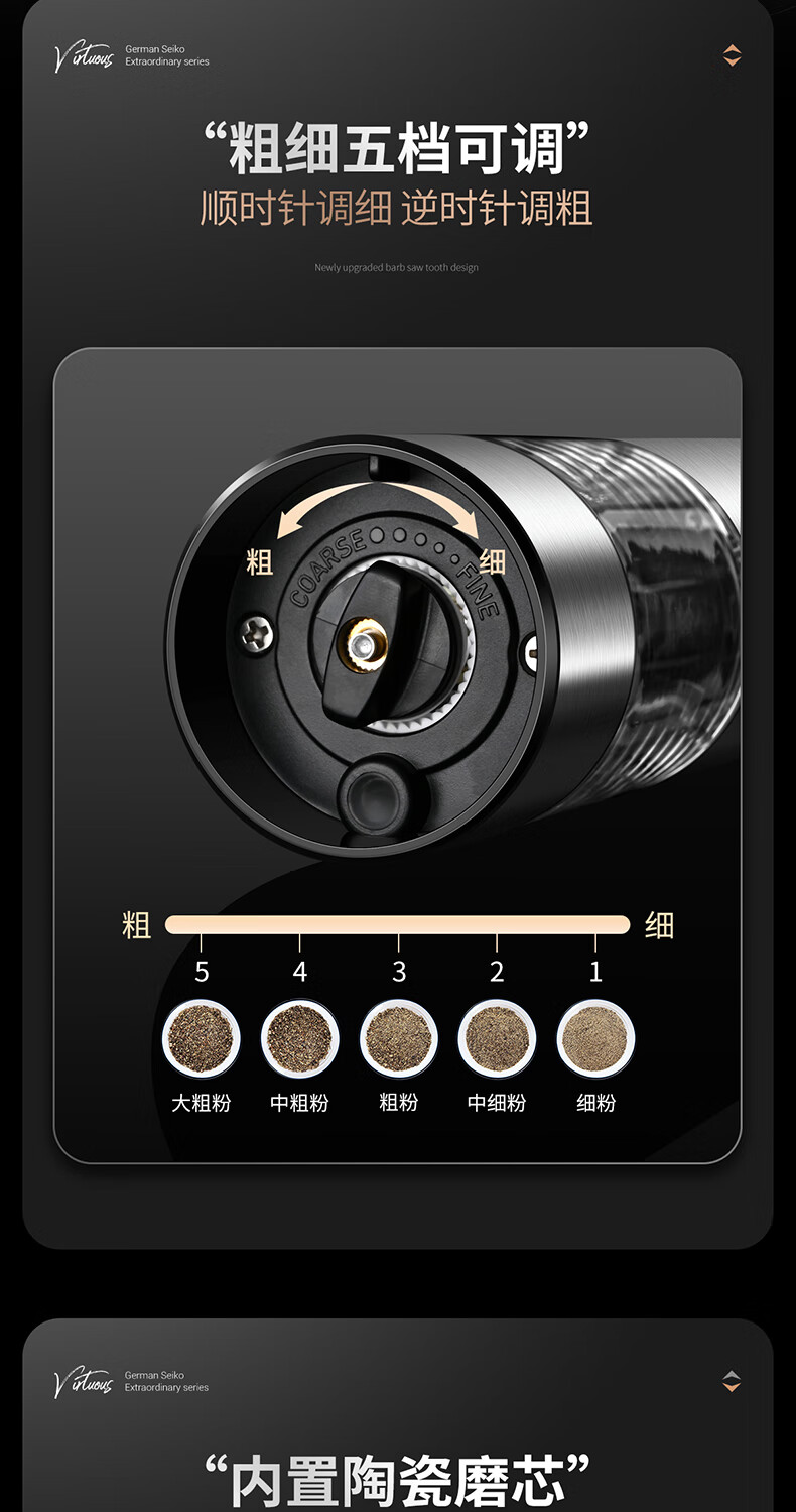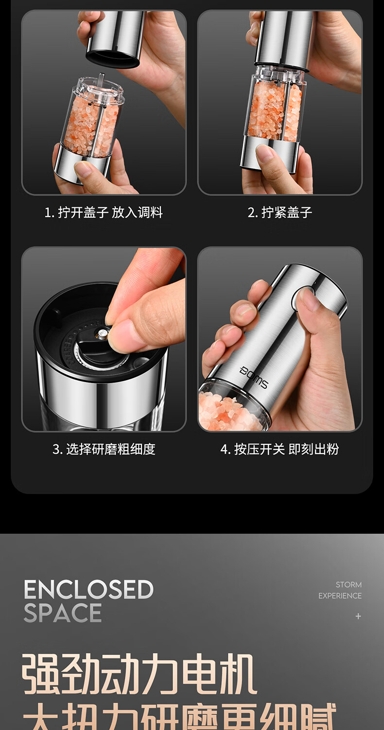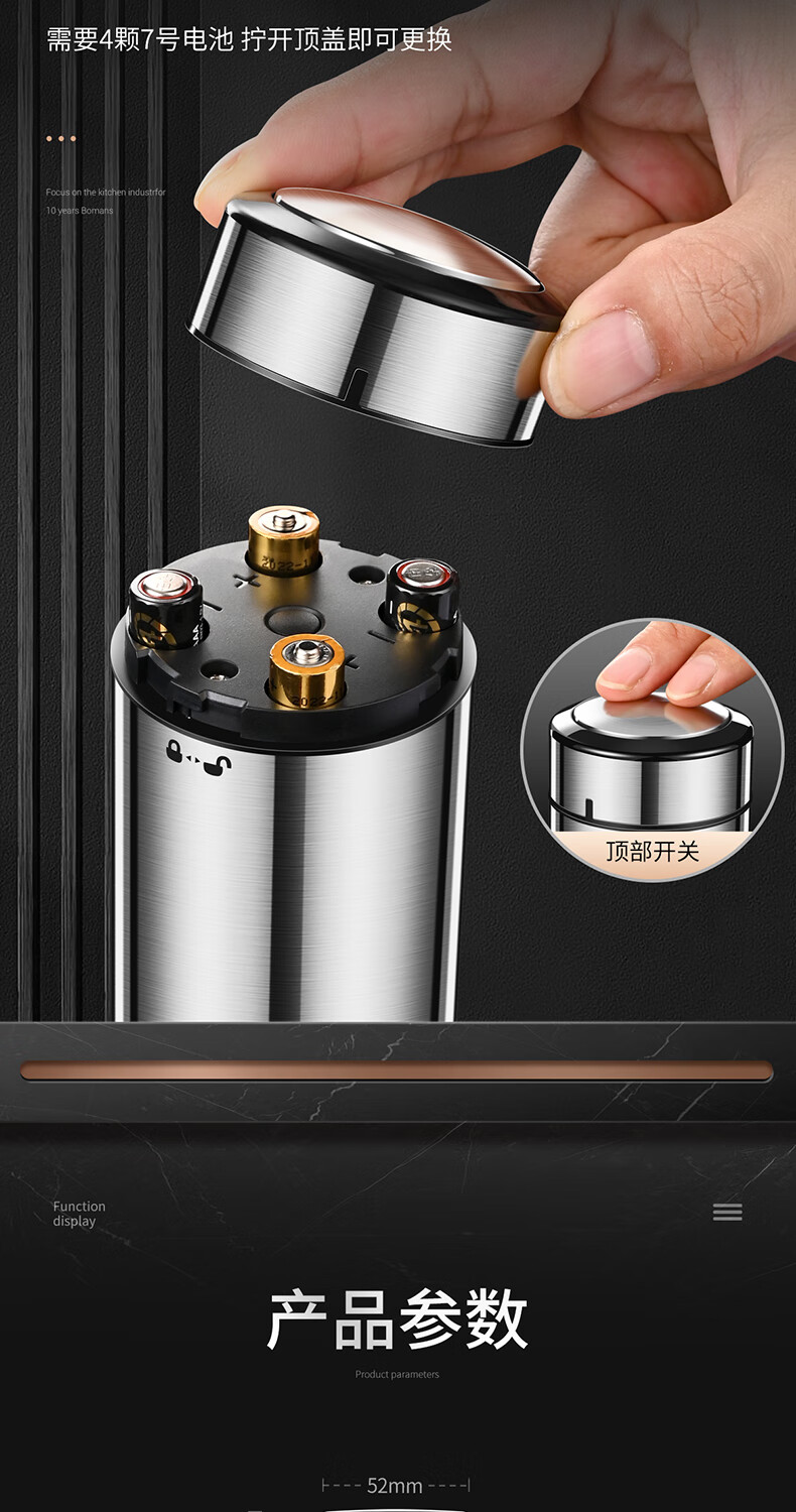 Bomans Electric Pepper Grinder Home External Adjustment Sichuan Pepper Sea Salt Electric Grinder Kitchen Pepper Grinding Bottle Jar Electric Grinder (Type-C Rechargeable Model)