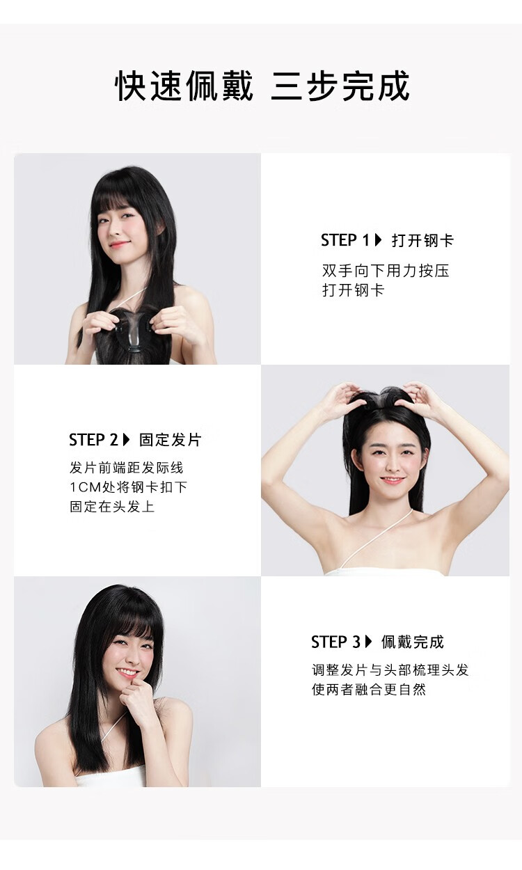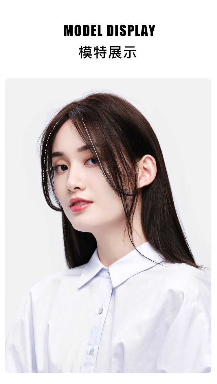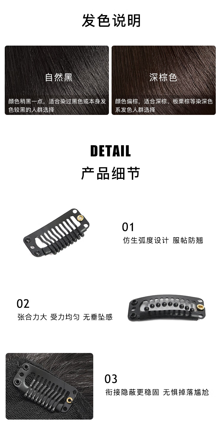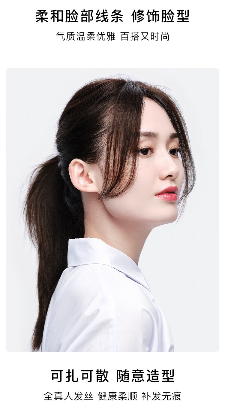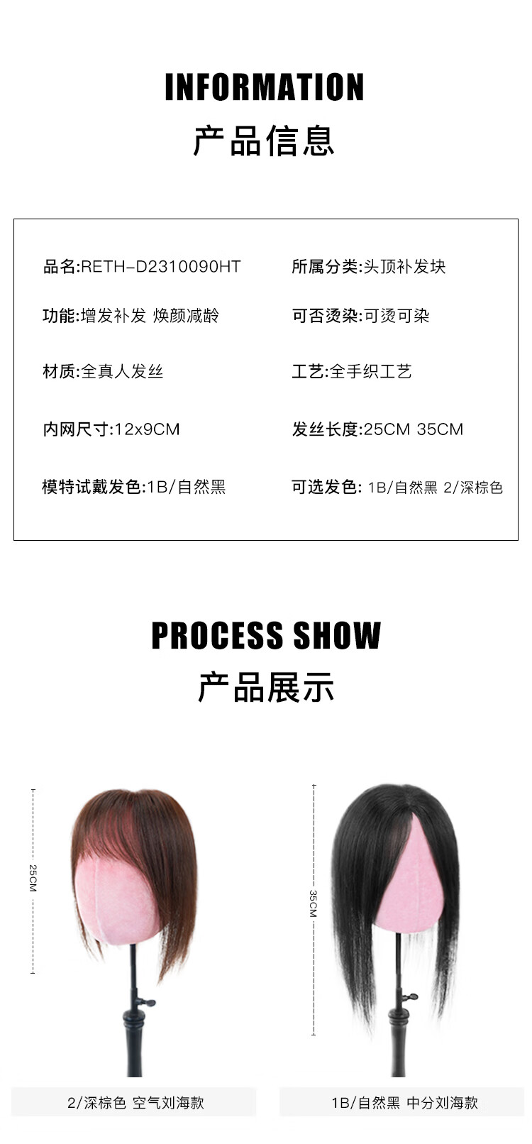 Rebecca wig for women, full human hair wig piece, butterfly shape on top of head, hand-woven MONO net, free split seam to cover white hair, replacement piece, center-parted bangs, natural black 25cm, fully hand-woven craftsmanship