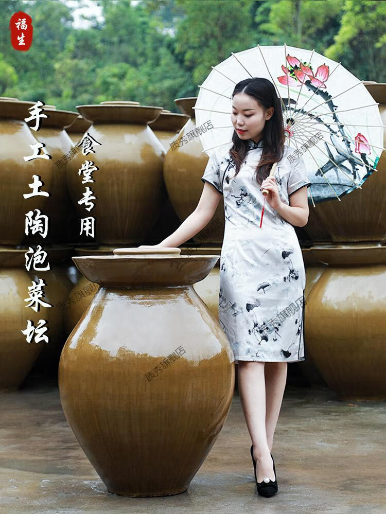 Aoshi earthenware pickle jar large pickle jar household thickened Sichuan old-fashioned pickle jar large mouth pickle jar with lid green glaze 13 catties with inner lid unified delivery