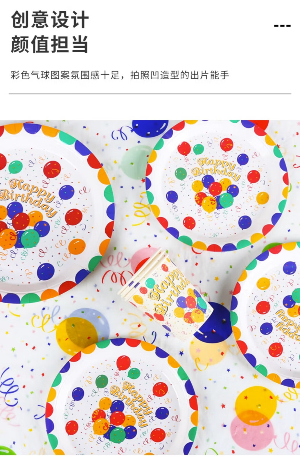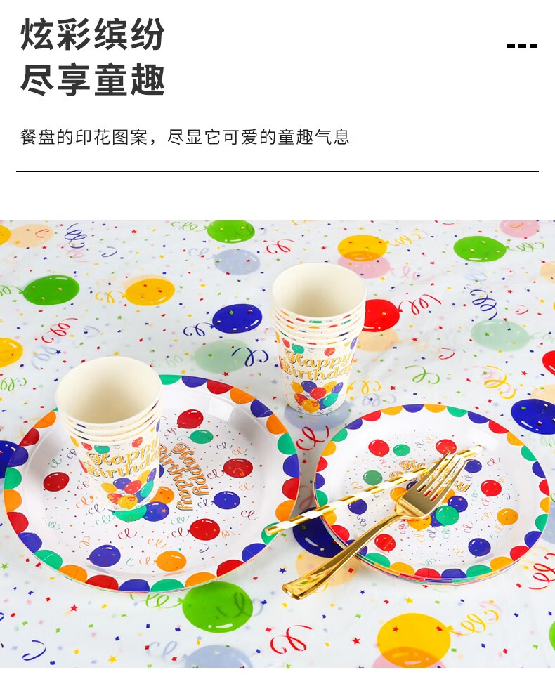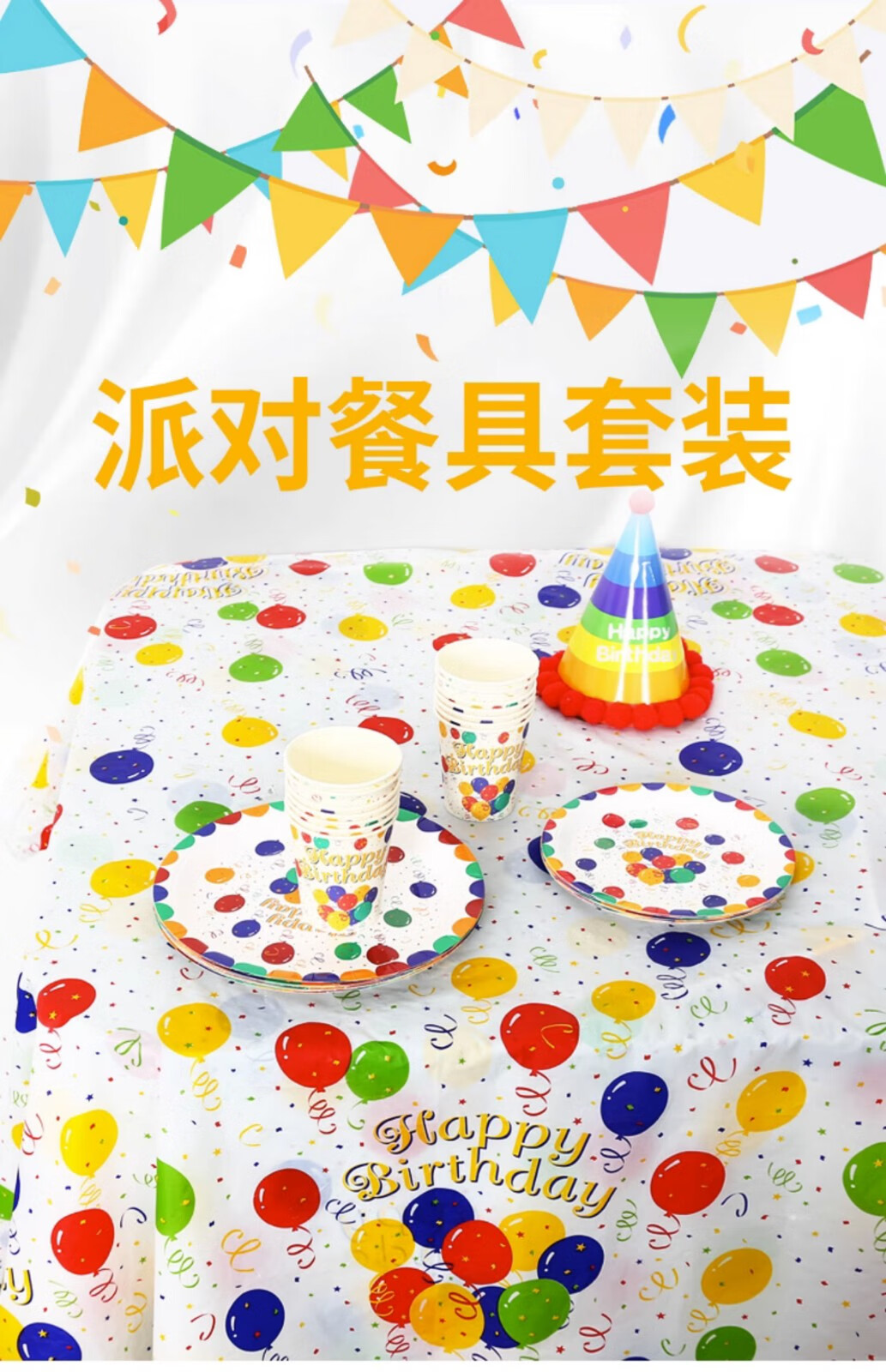 Wilkie children's birthday party scene layout disposable tableware set party tablecloth cake plate decoration plate birthday tablecloth + 10 7-inch paper plates + 10 paper cups