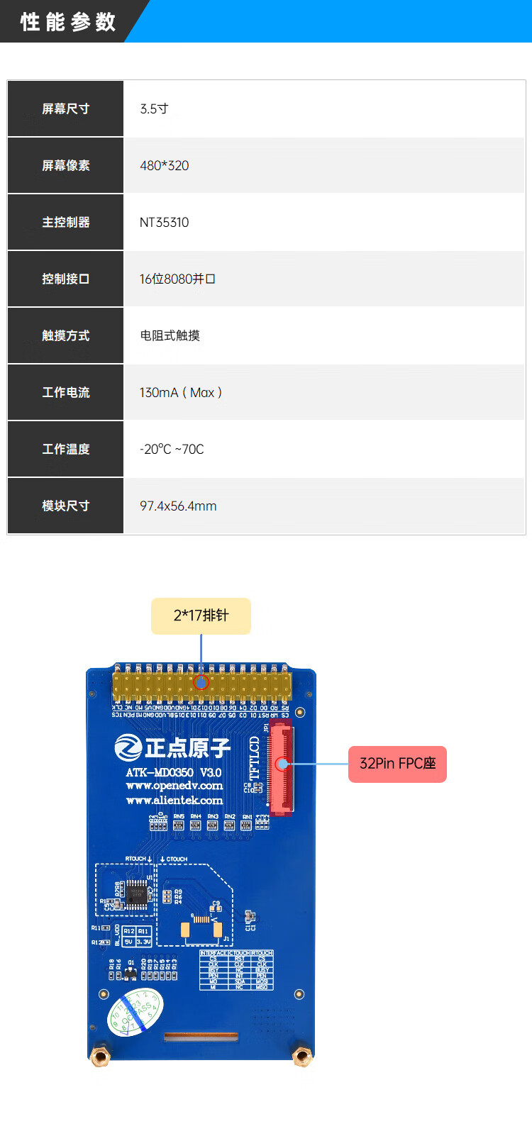 MCU screen resistive screen punctual atomic 3.5-inch TFT LCD module touch LCD screen display color 320*480 3.5-inch screen (resistive screen, 320*480)