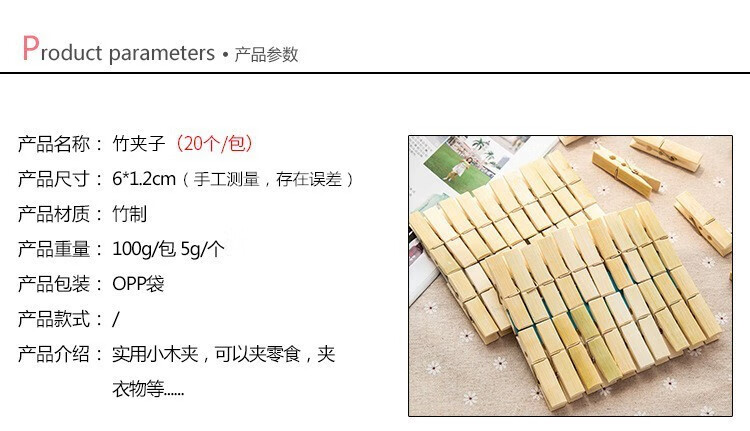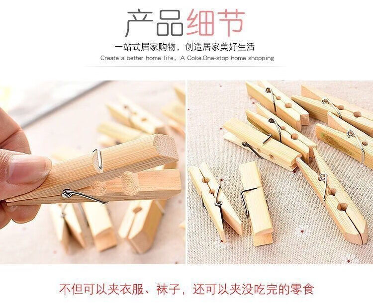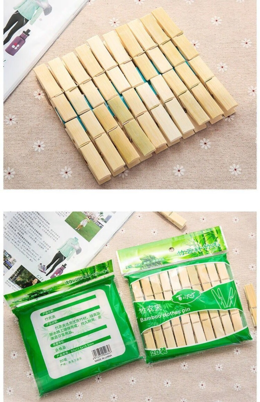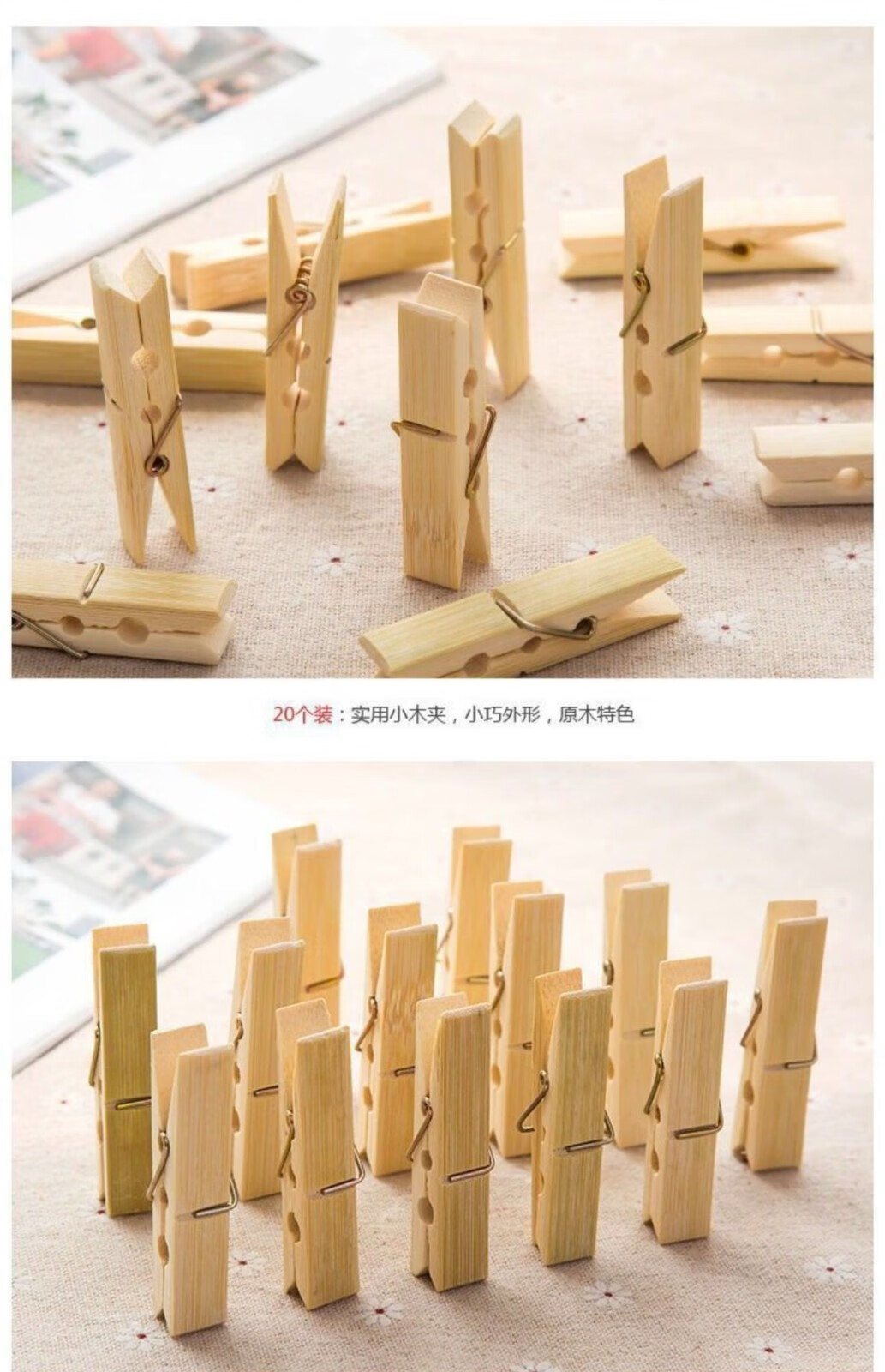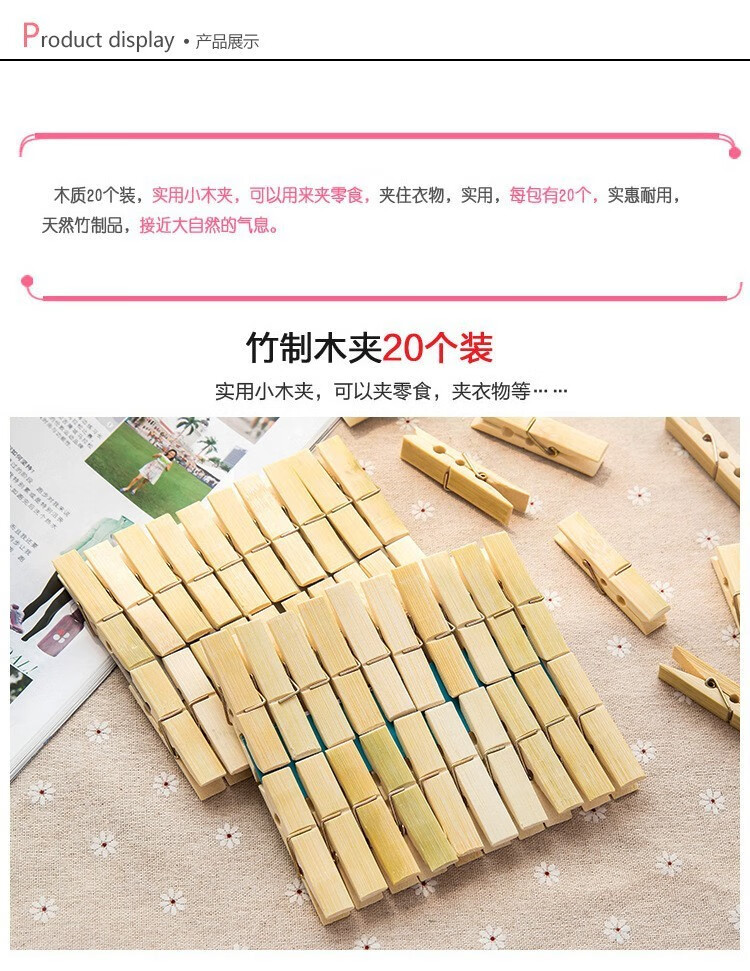 Clothes clips, bamboo clips, clothes hangers, multifunctional wooden windproof household fixed clips, drying rack clothes clips, 20 pieces -