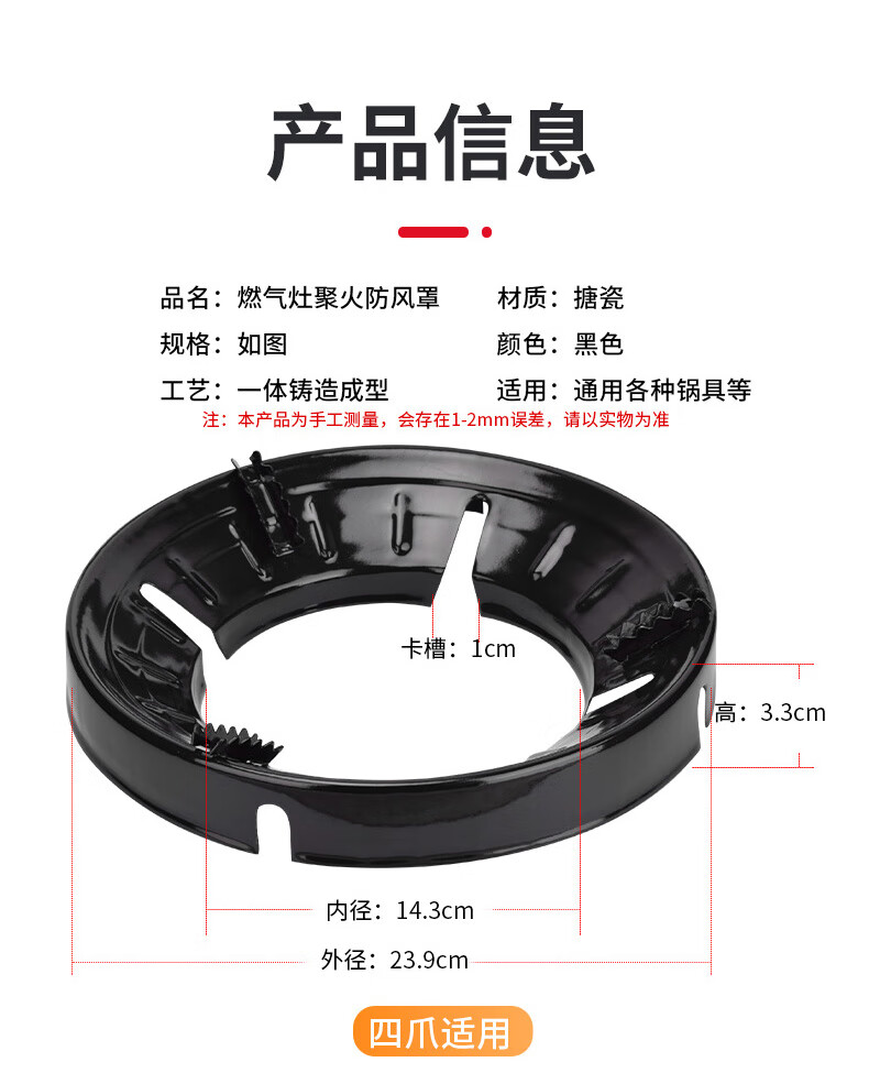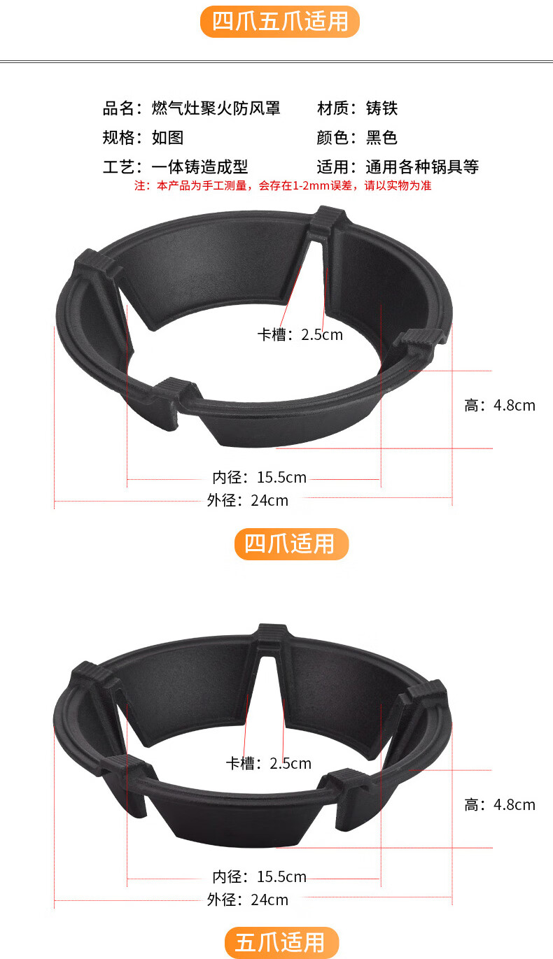 CLCEY boss gas stove windproof cover gathers fire, saves energy, household windshields gas stove, anti-slip bracket support accessories, saves gas, enamel four claws and five claws universal style 2 pack +1