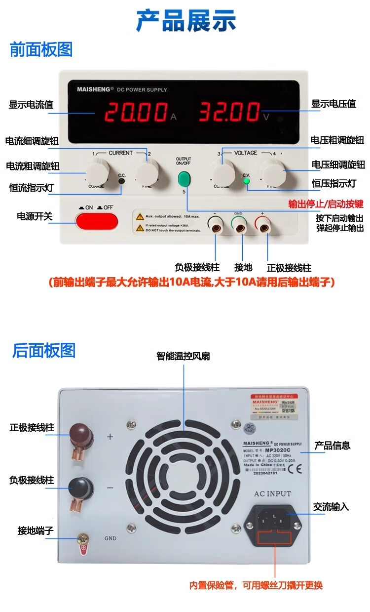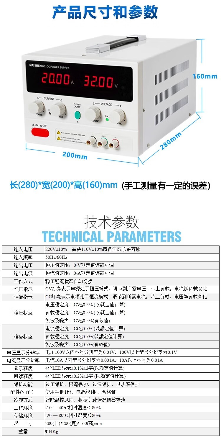 MAISHENG adjustable DC regulated power supply 30V60V300V400V500V5A adjustable charging maintenance experiment test power supply MP8060C 0-80V0-60A