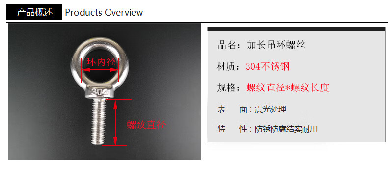 Moyi 304 stainless steel eye screw extended eye bolt ring lifting screw M6M8M10M12M16M20 M16*40