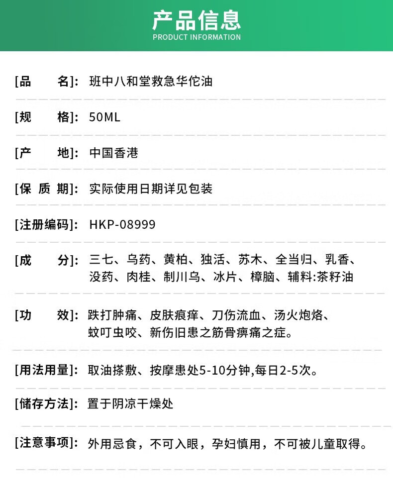 Banzhong Bahetang First Aid Huatuo Oil 50ML Hong Kong Oil Broken Pain Oil for Bruises and Old Sufferings, Dispersing Blood Stasis and Removing Wind Banzhong Bahetang First Aid Huatuo Oil 2 Bottles