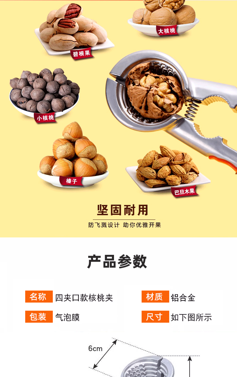 Jingyan Walnut Clamp Sheller Tool Household Chestnut Multifunctional Hazelnut Pliers for Opening Walnuts and Nuts, one second shelling, four-clamp walnut clamp, easy to crush/one clamp for multiple purposes/saving time and effort