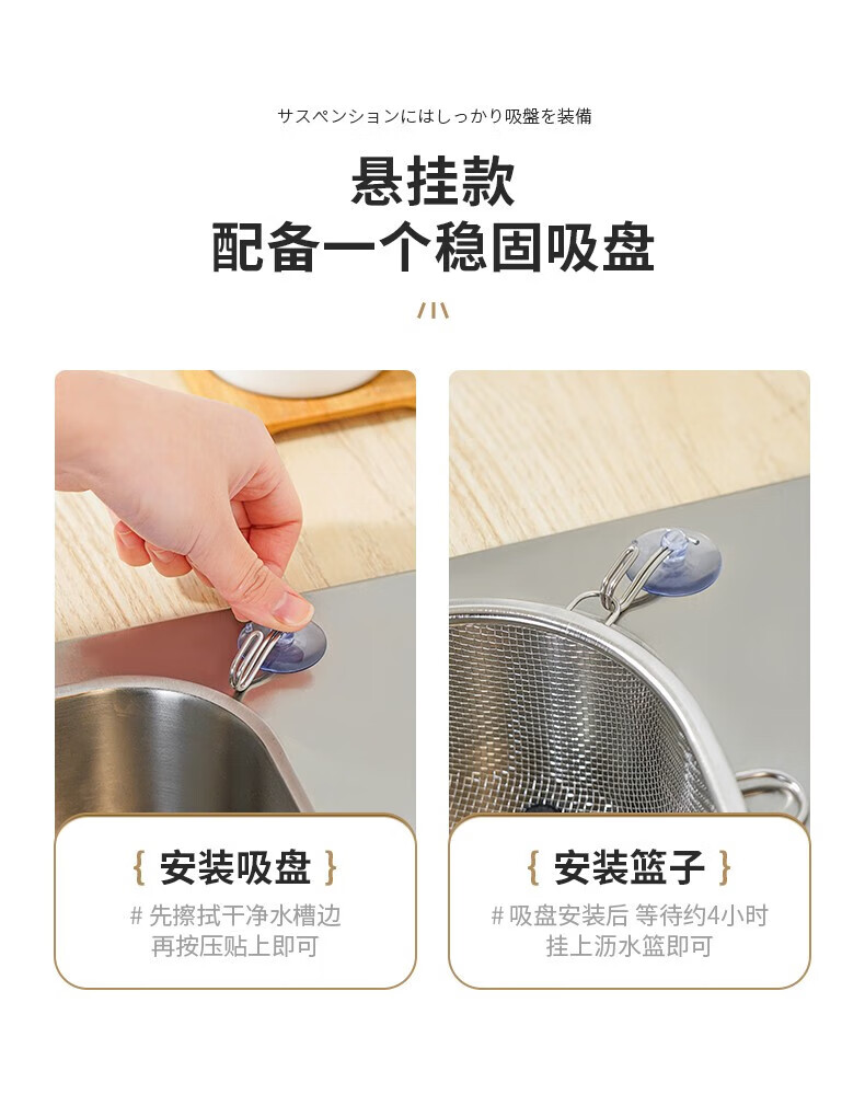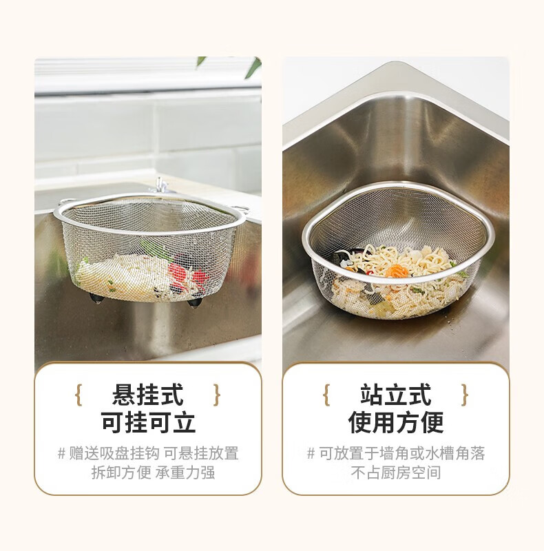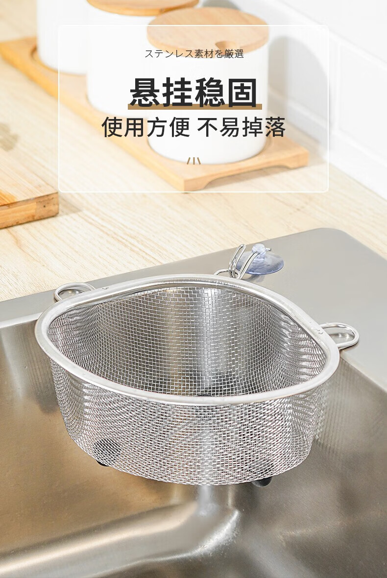 SP SAUCE Japanese kitchen stainless steel sink triangle drain basket storage rack wash basin pool water filter storage hanging basket filter standing model large
