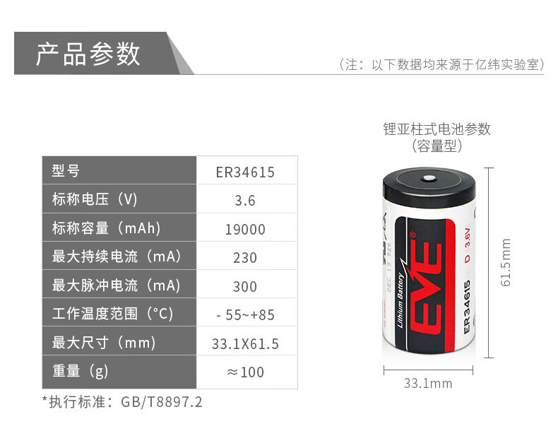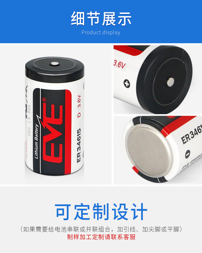 Yiwei ER34615 smart water meter natural gas gas meter flow meter GPS locator sensor No. 1 D type 3.6V lithium battery with XH2.54-A plug