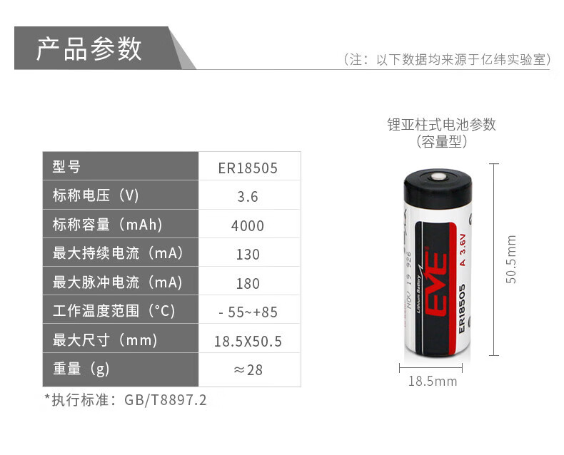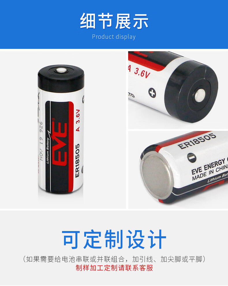 EVE Yiwei lithium energy ER18505 smart water meter, electricity meter, thermostat, heating meter locator 3.6V lithium battery with XH2.54-A plug