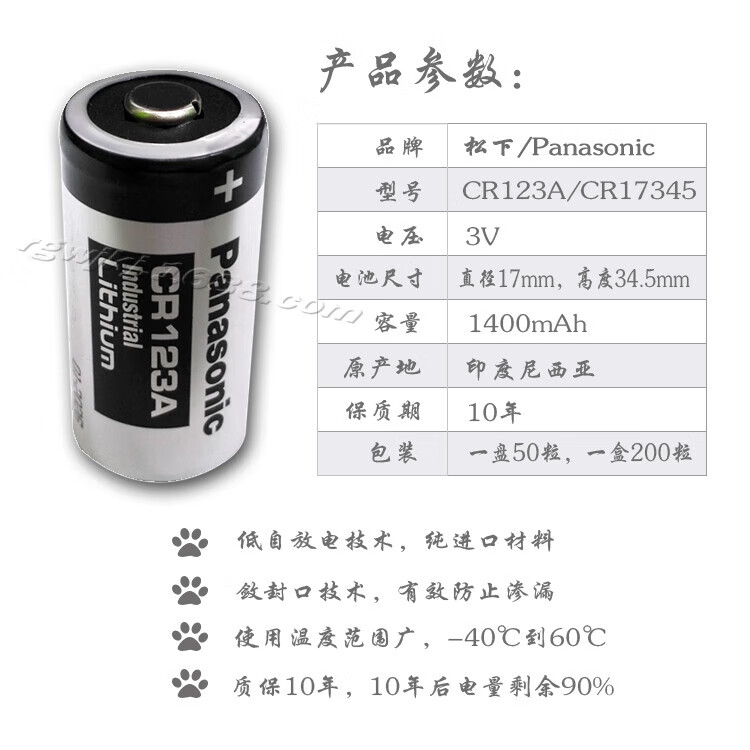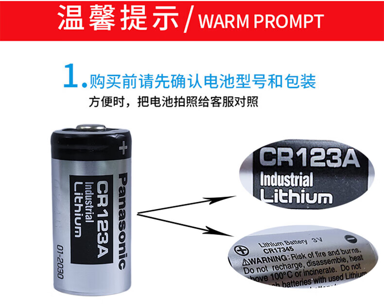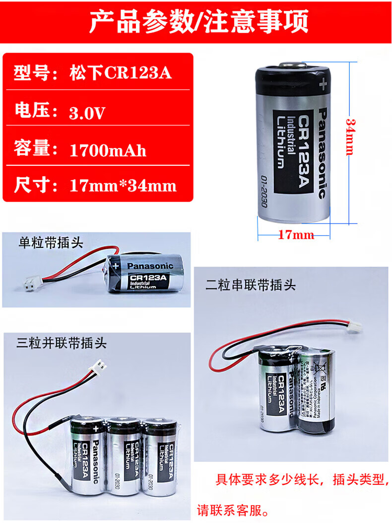 Panasonic CR123A film camera camera CR17345 Jingda water meter GPS locator MR-BAT6V industrial control 3V lithium battery CR123A with XH2.54-B plug (Jingda water meter)