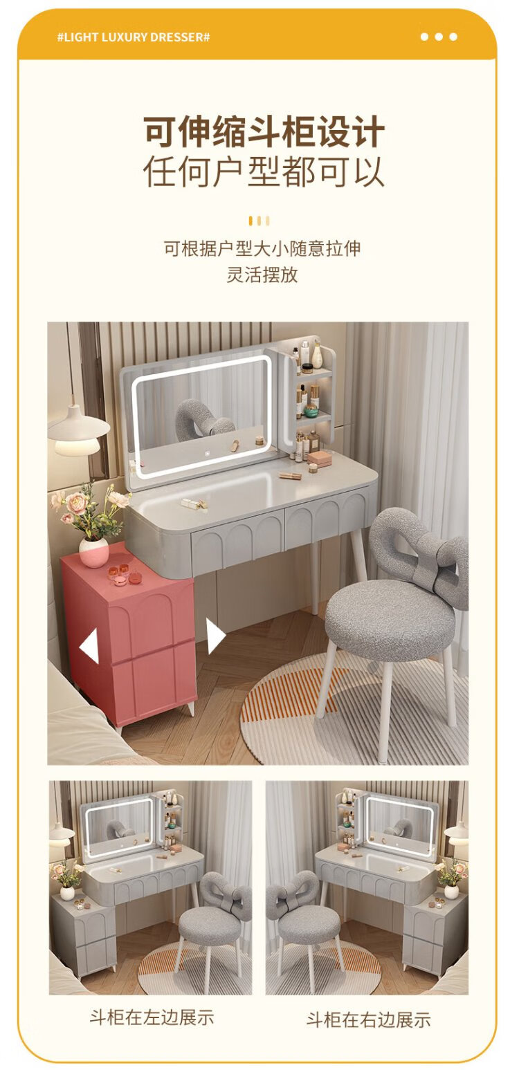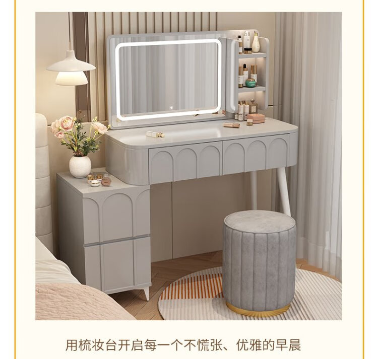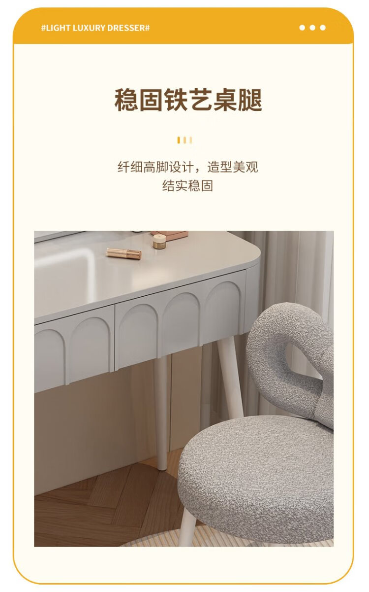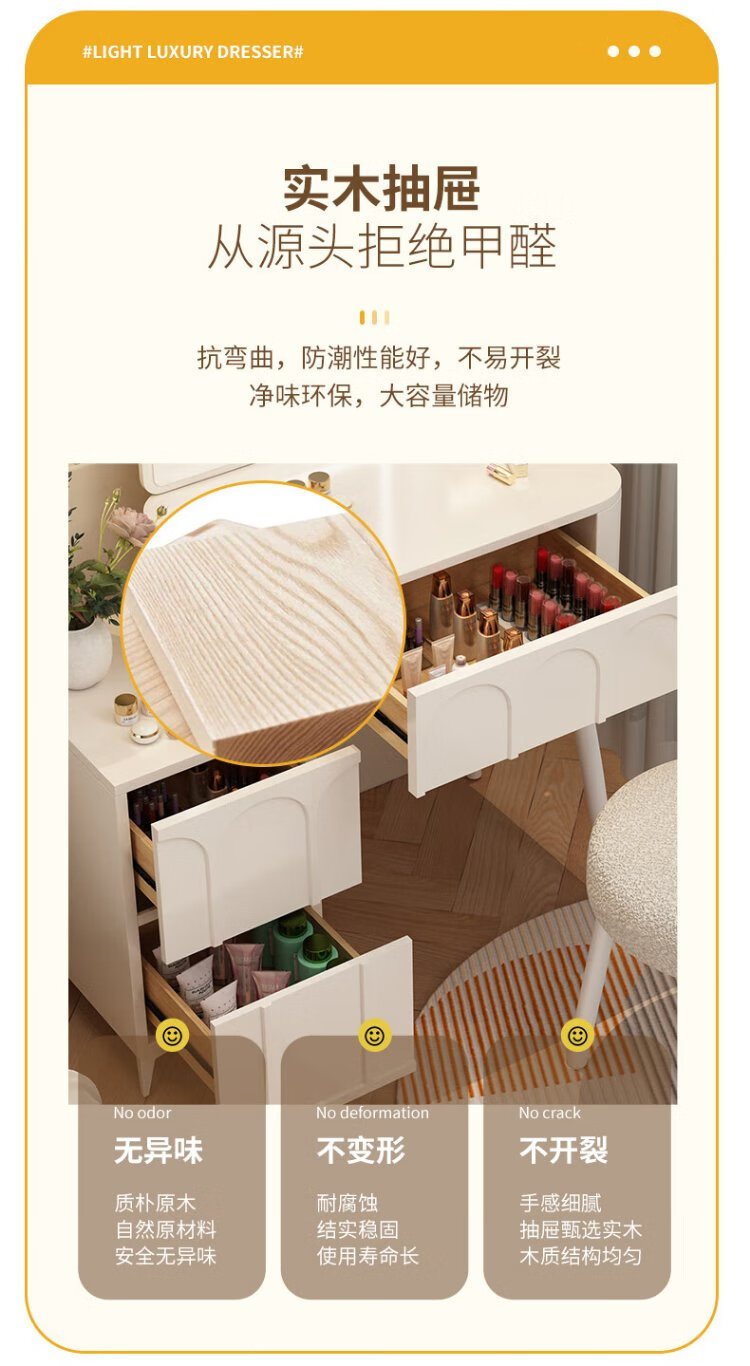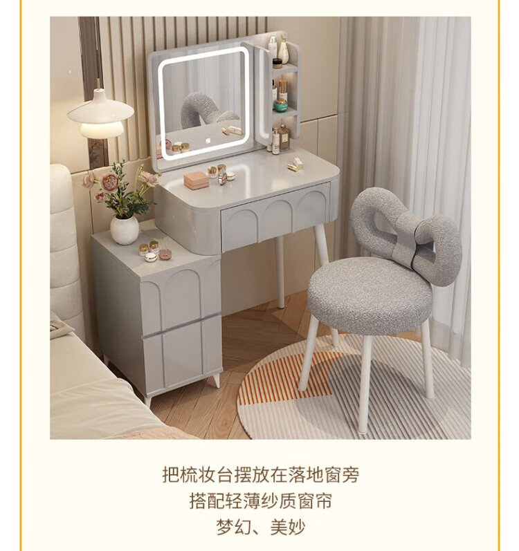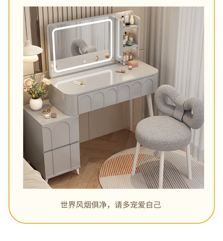 DUMANNI Cream Style Dressing Table Bedroom Modern Simple Small Apartment Solid Wood Dressing Table Desk Cabinet Desk Mirror Integrated Cream White 100 Table + Storage Cabinet + Mirror + Petal Chair Complete