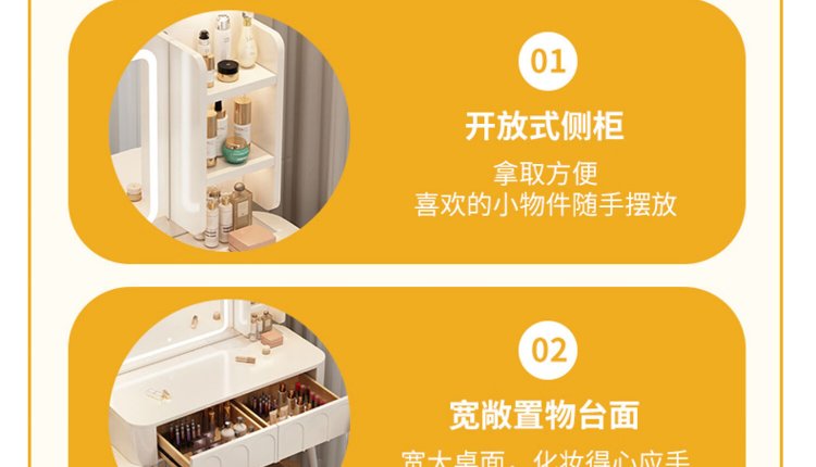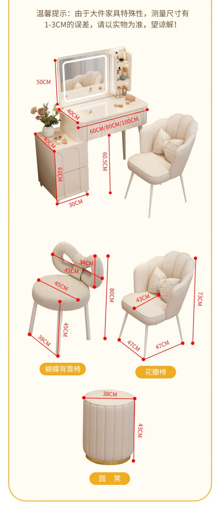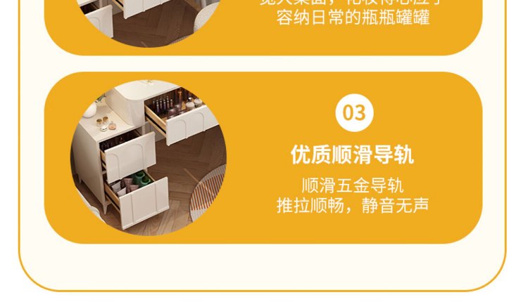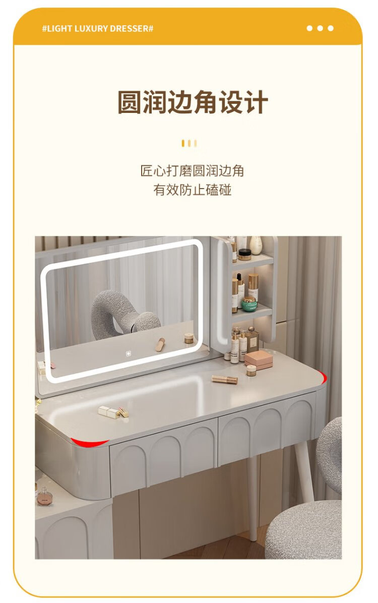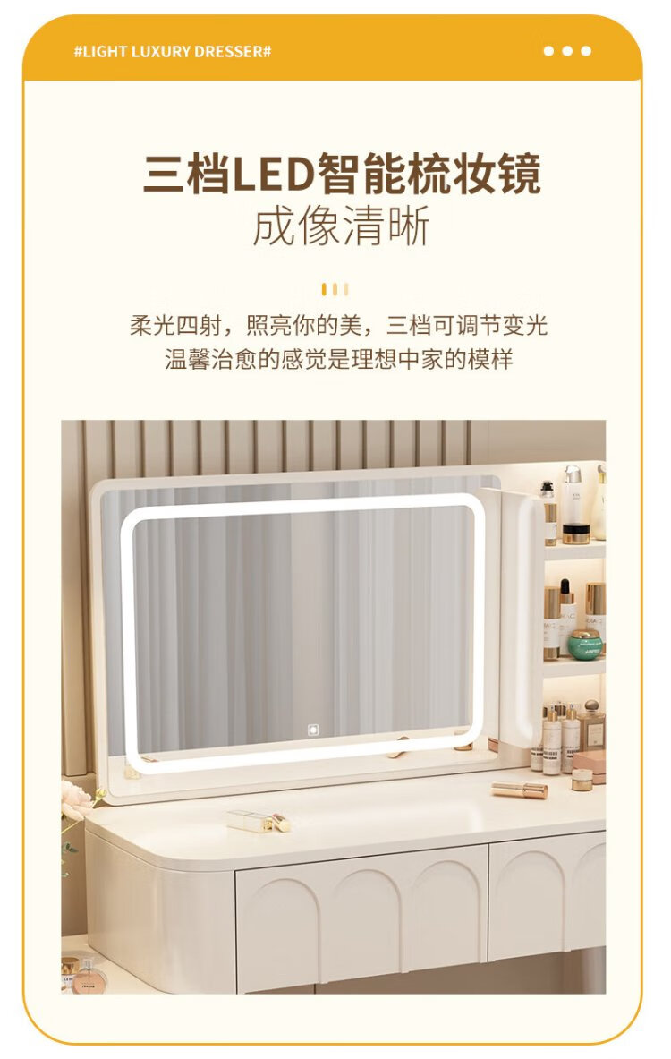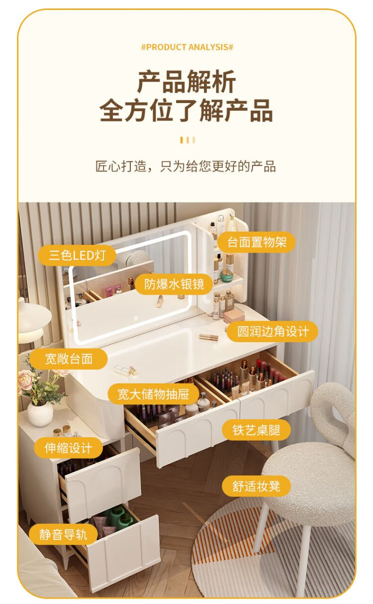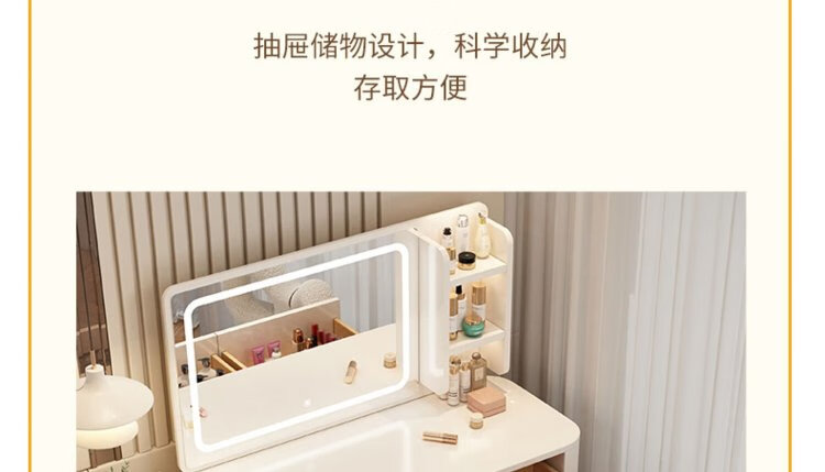 DUMANNI Cream Style Dressing Table Bedroom Modern Simple Small Apartment Solid Wood Dressing Table Desk Cabinet Desk Mirror Integrated Cream White 100 Table + Storage Cabinet + Mirror + Petal Chair Complete