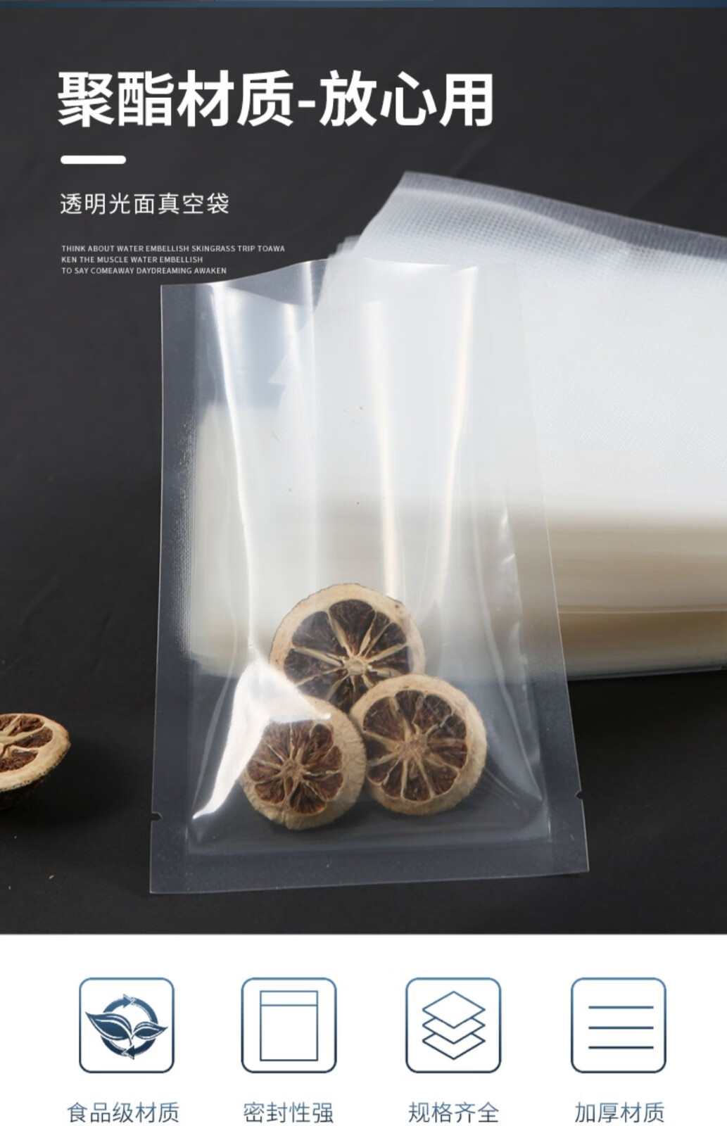 Dingli vacuum bag vacuum packaging bag 16 filaments 20 filaments commercial sealing machine nylon transparent fresh-keeping cooked food sealing bag glossy vacuum bag 30*40*20 filaments 100 pieces (polyester material)