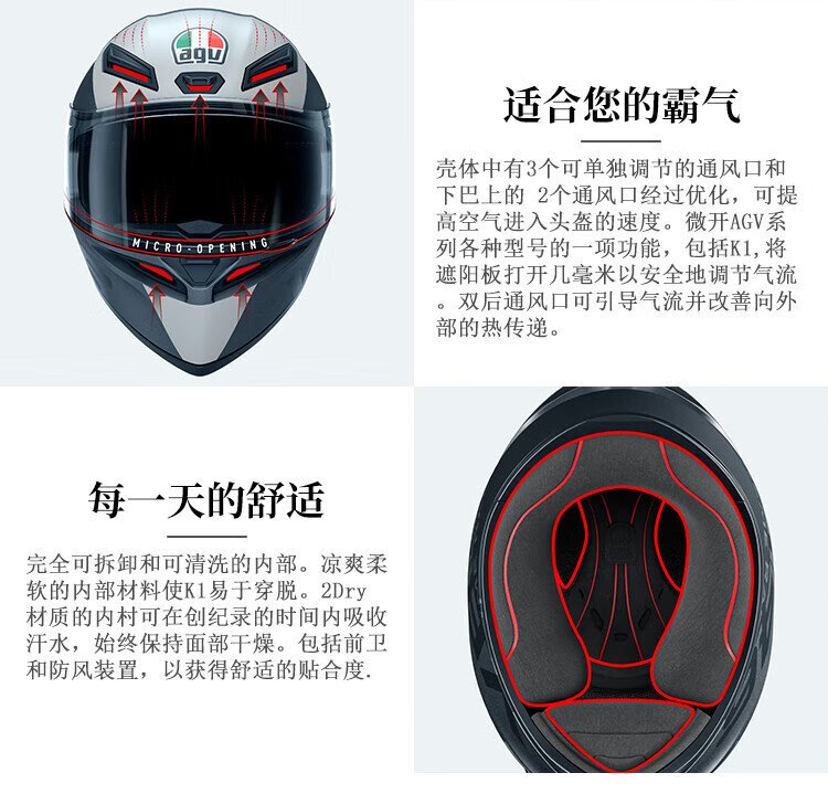 AGV K1S helmet K1 motorcycle motorcycle full-face helmet all-season universal full-coverage running helmet for men and women wide-angle ventilated breathable 3C K1S-WARMUP MATT BLACK RED XL (suitable for 59-61 head circumference)