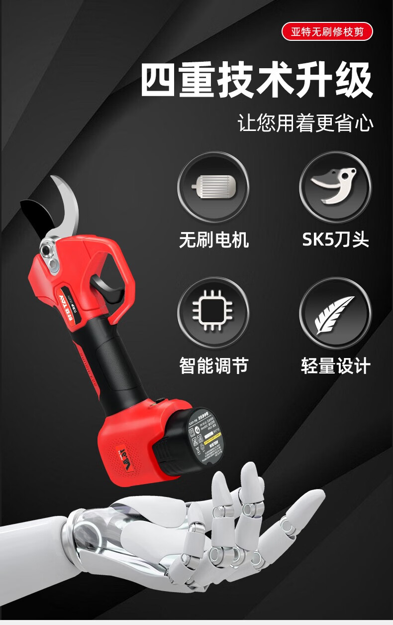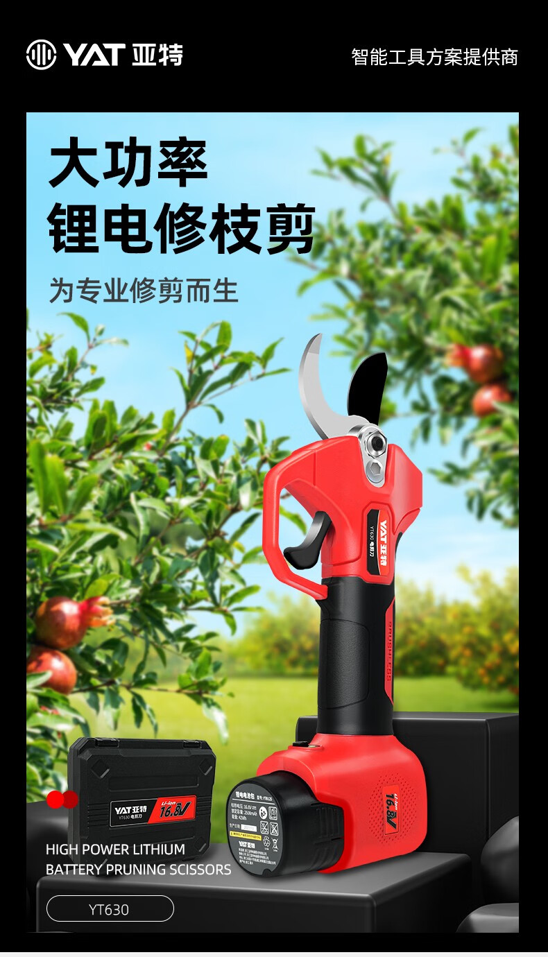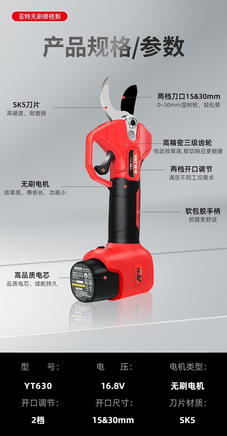 Yate electric pruning shears, rechargeable lithium-ion pruning shears, special scissors for fruit branch pruning, gardening shears, wireless thick branch shears, YT630 brushless pruning shears (dual battery package)