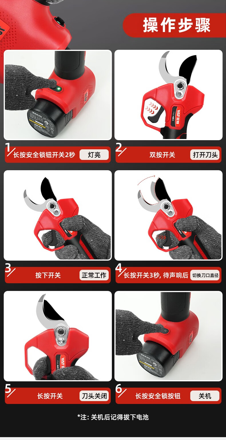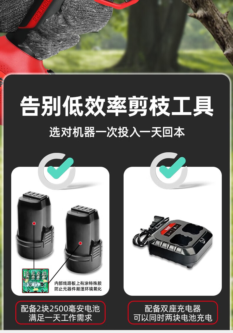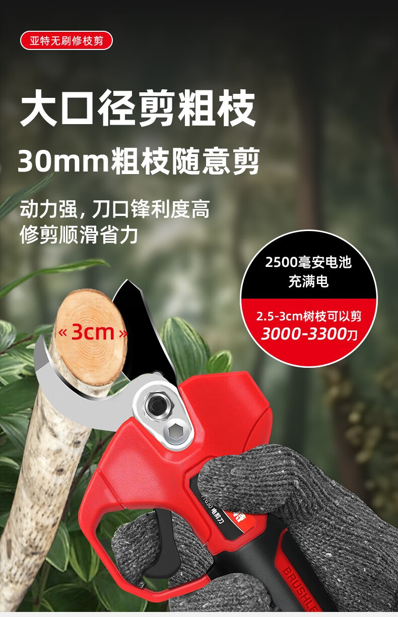 Yate electric pruning shears, rechargeable lithium-ion pruning shears, special scissors for fruit branch pruning, gardening shears, wireless thick branch shears, YT630 brushless pruning shears (dual battery package)