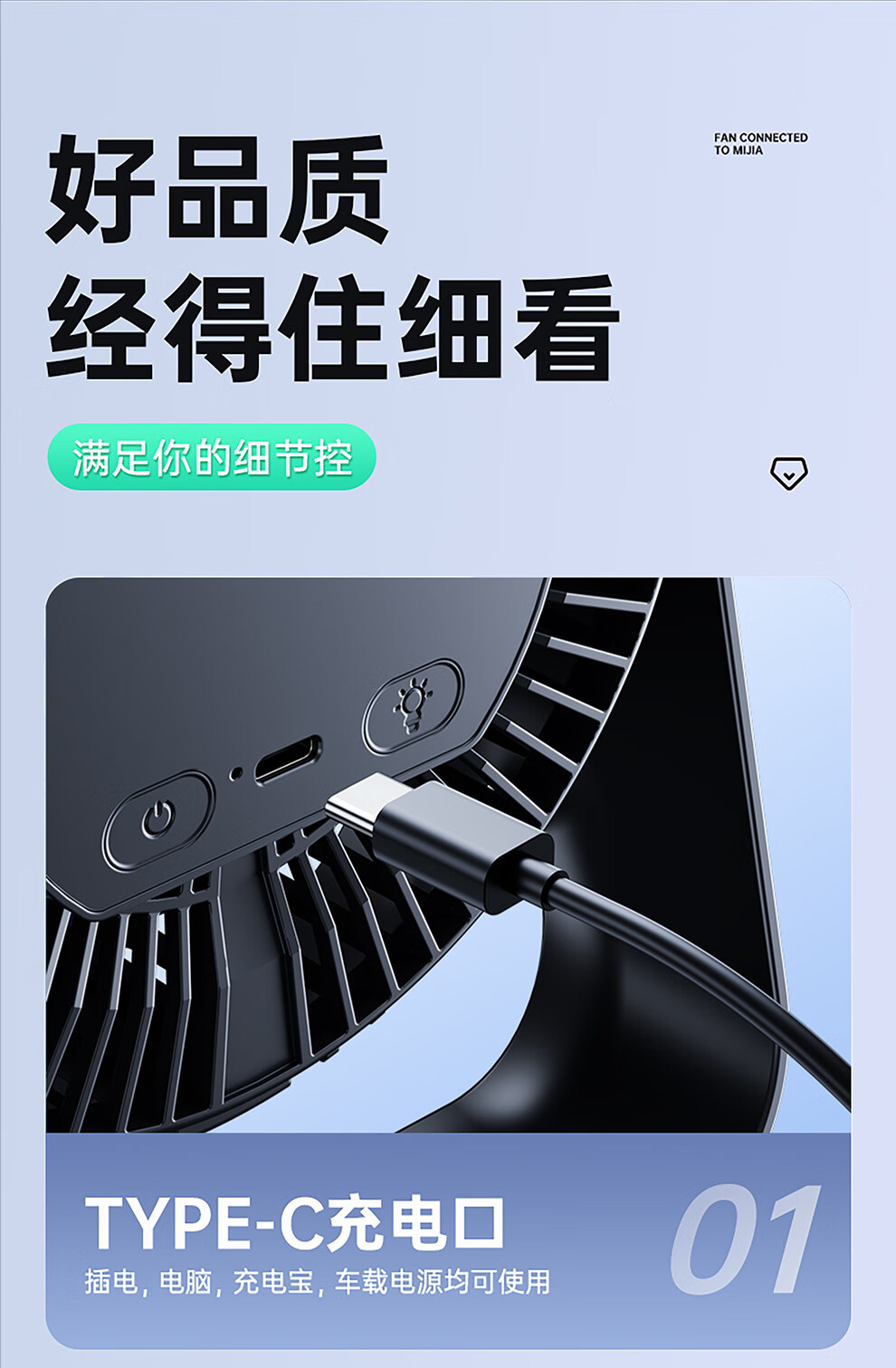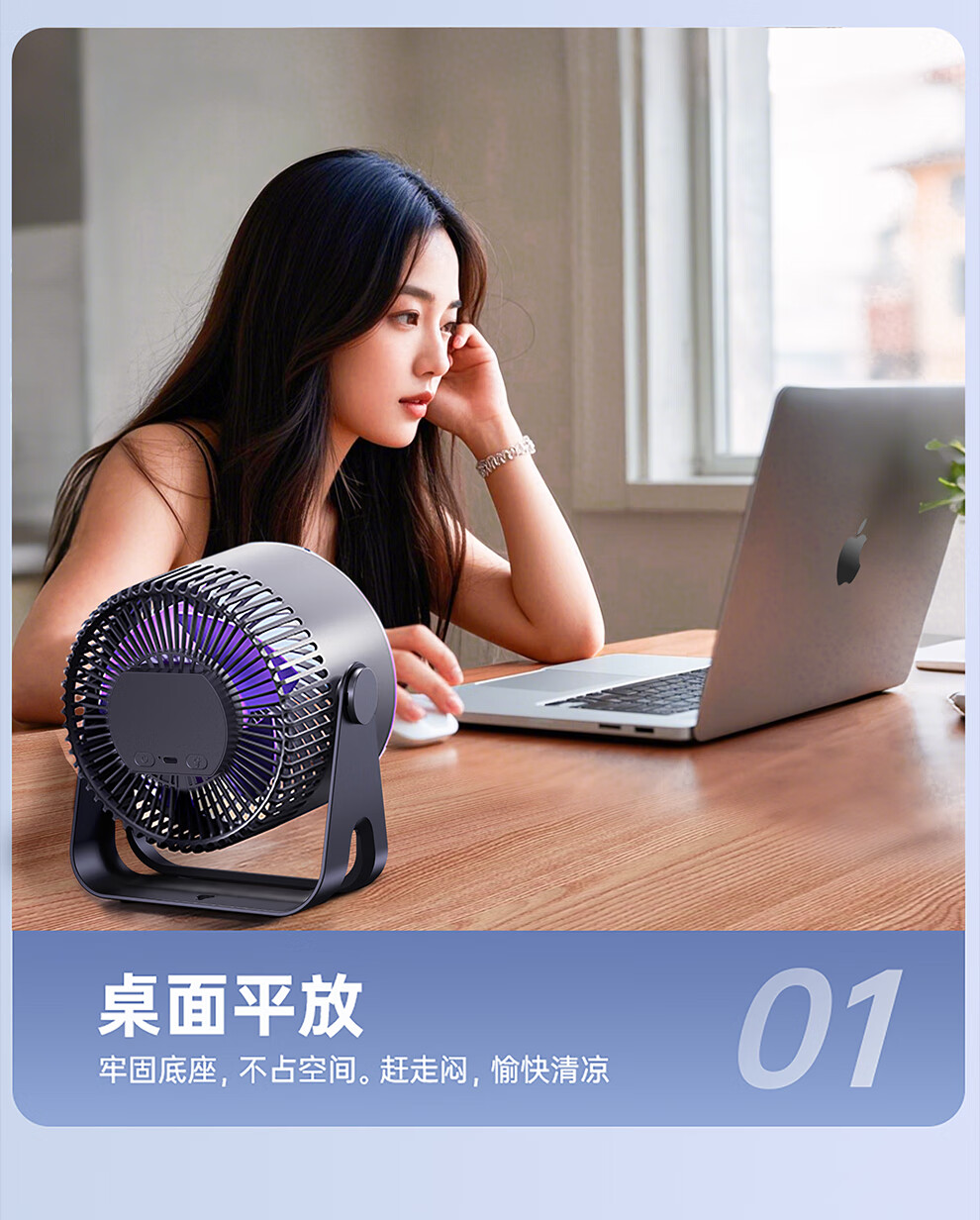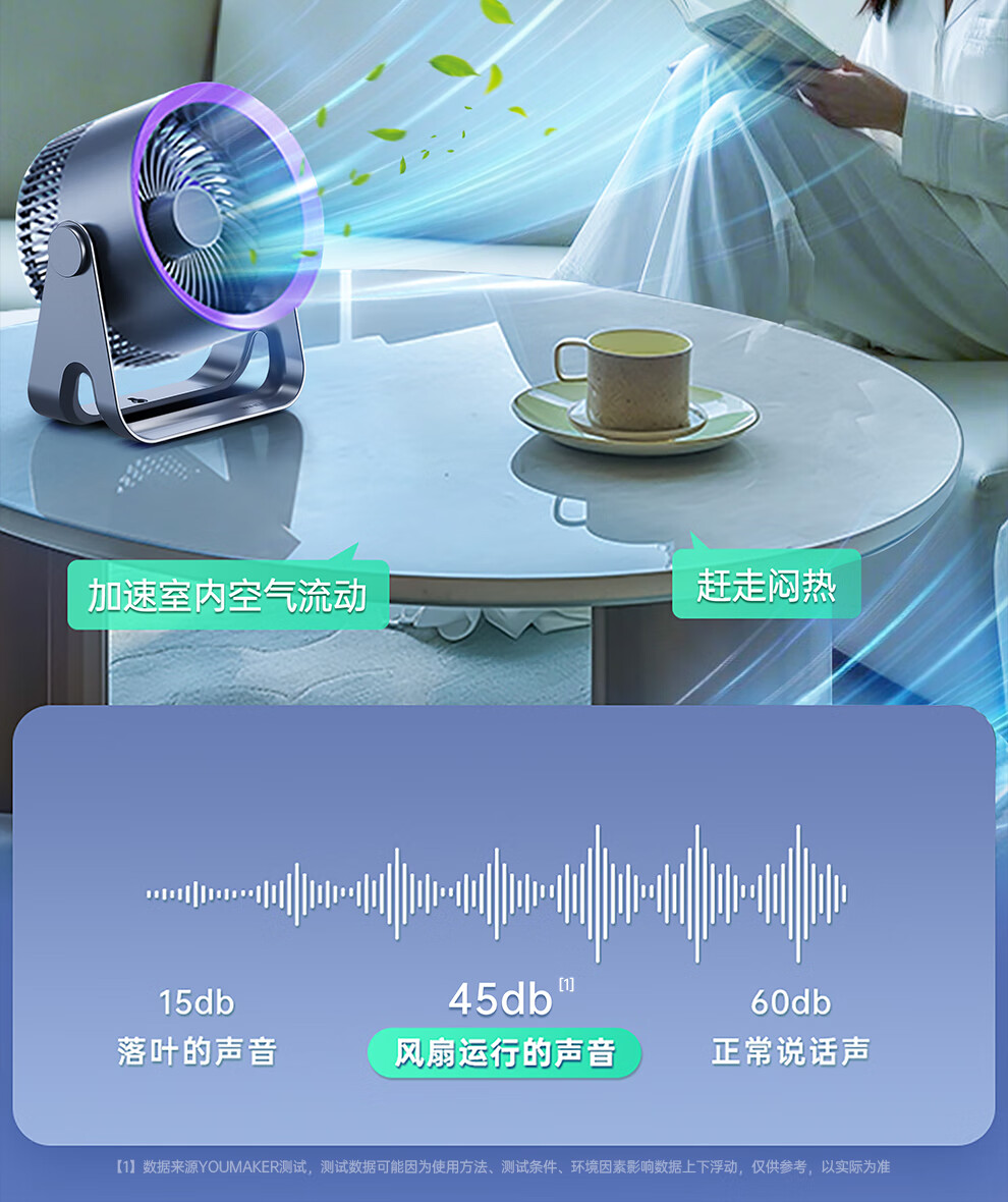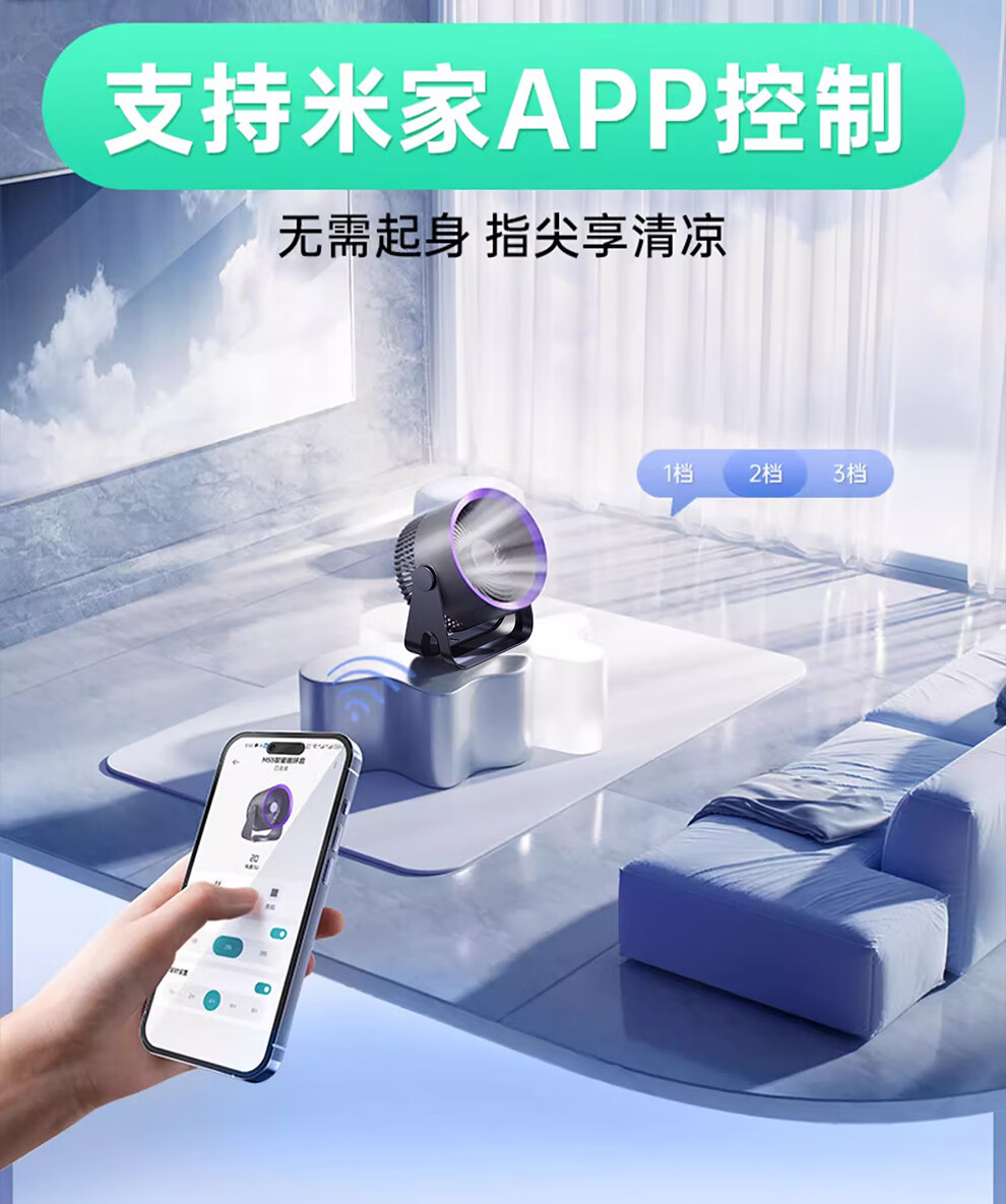 YOUMAKER supports Mijia App smart wind control desktop small fan air circulation fan dormitory student countertop office USB cooling fan household turbine mini electric fan rechargeable version gray long battery life five-speed circulating air 丨 can be hung and can be charged and plugged in