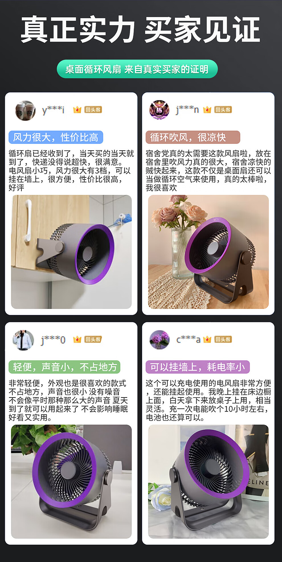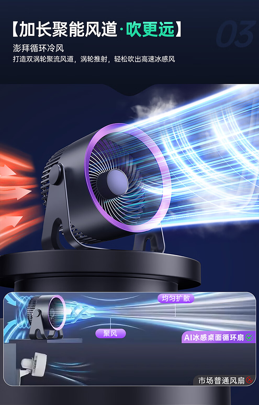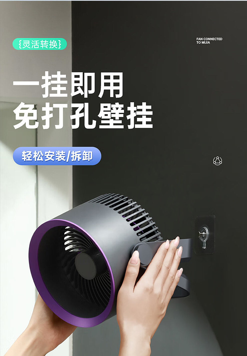 YOUMAKER supports Mijia App smart wind control desktop small fan air circulation fan dormitory student countertop office USB cooling fan household turbine mini electric fan rechargeable version gray long battery life five-speed circulating air 丨 can be hung and can be charged and plugged in