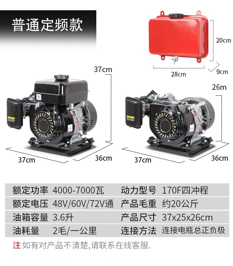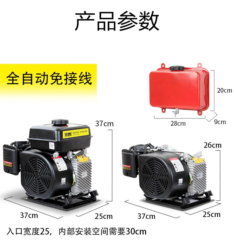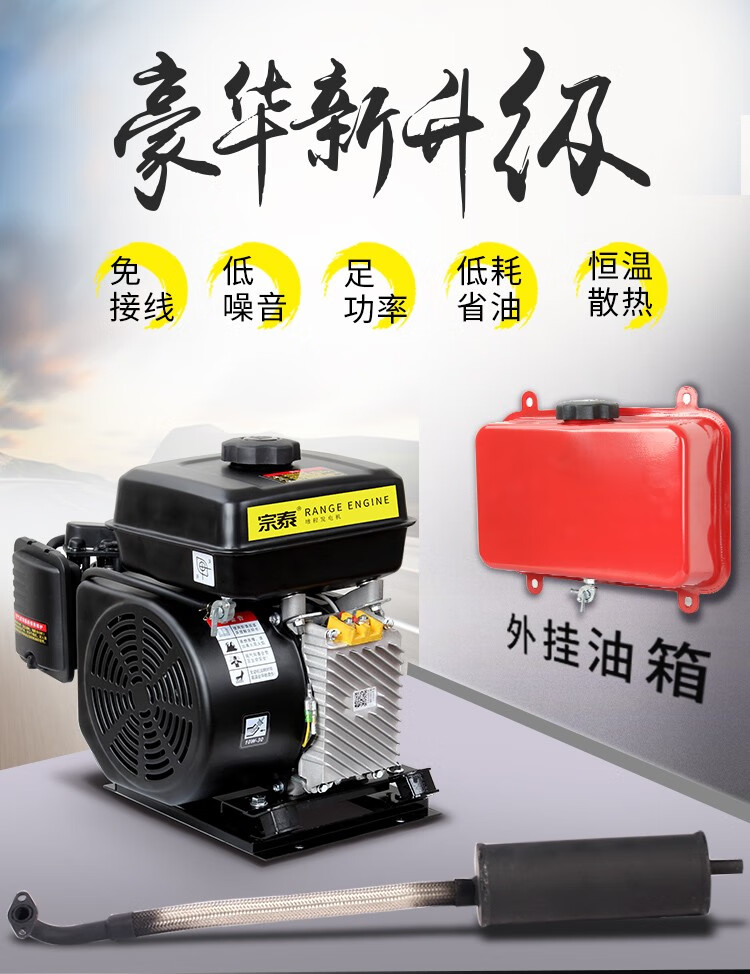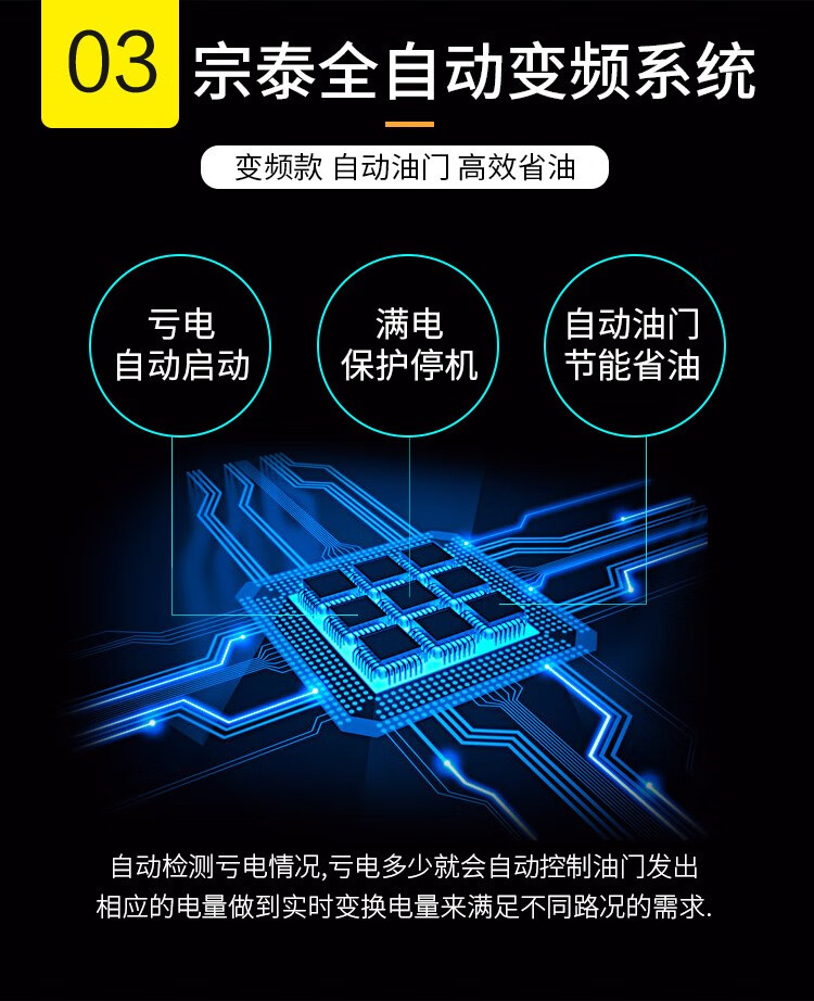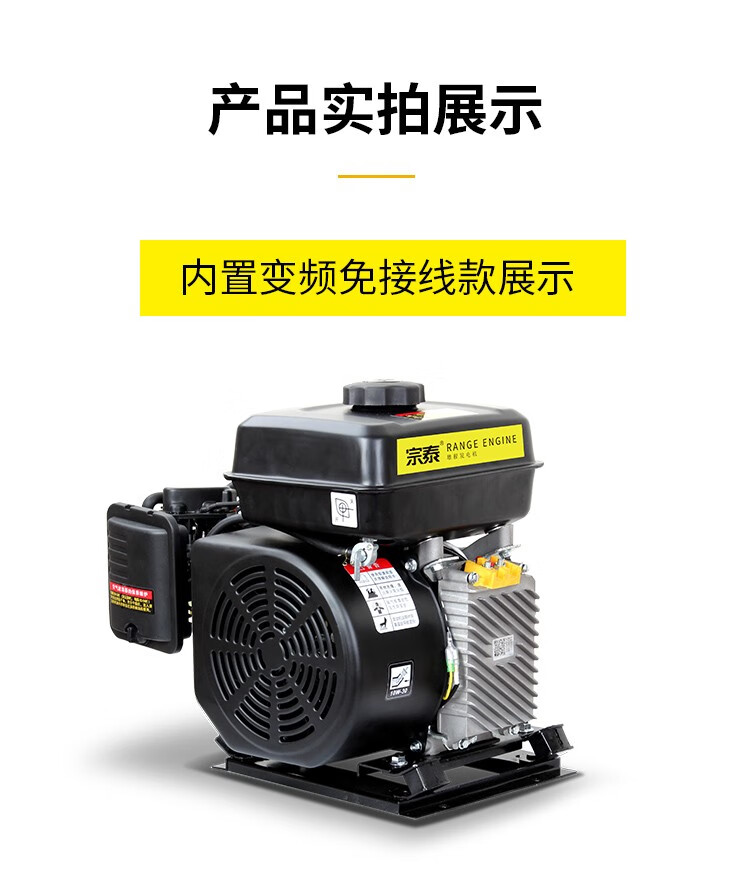 Zongtai variable frequency gasoline range extender battery 48V60V72V automatic three/four-wheel car generator four-stroke range extender without wiring fully automatic 7KW three-wheel special