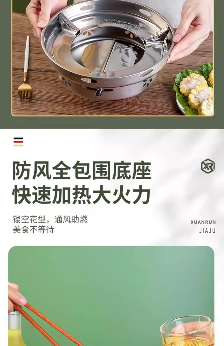 Jiudu solid alcohol stove small hot pot commercial household dry pot outdoor portable special small pot set 24CM dry pot + stove (suitable for 2-4 people)
