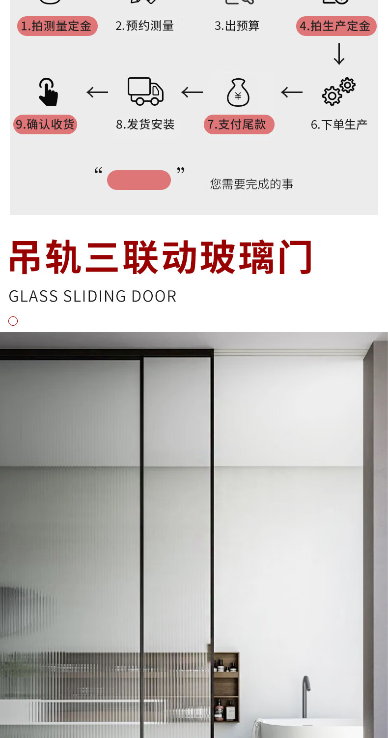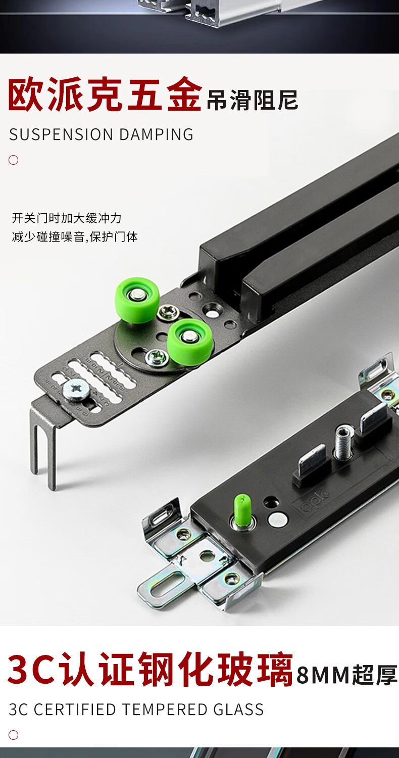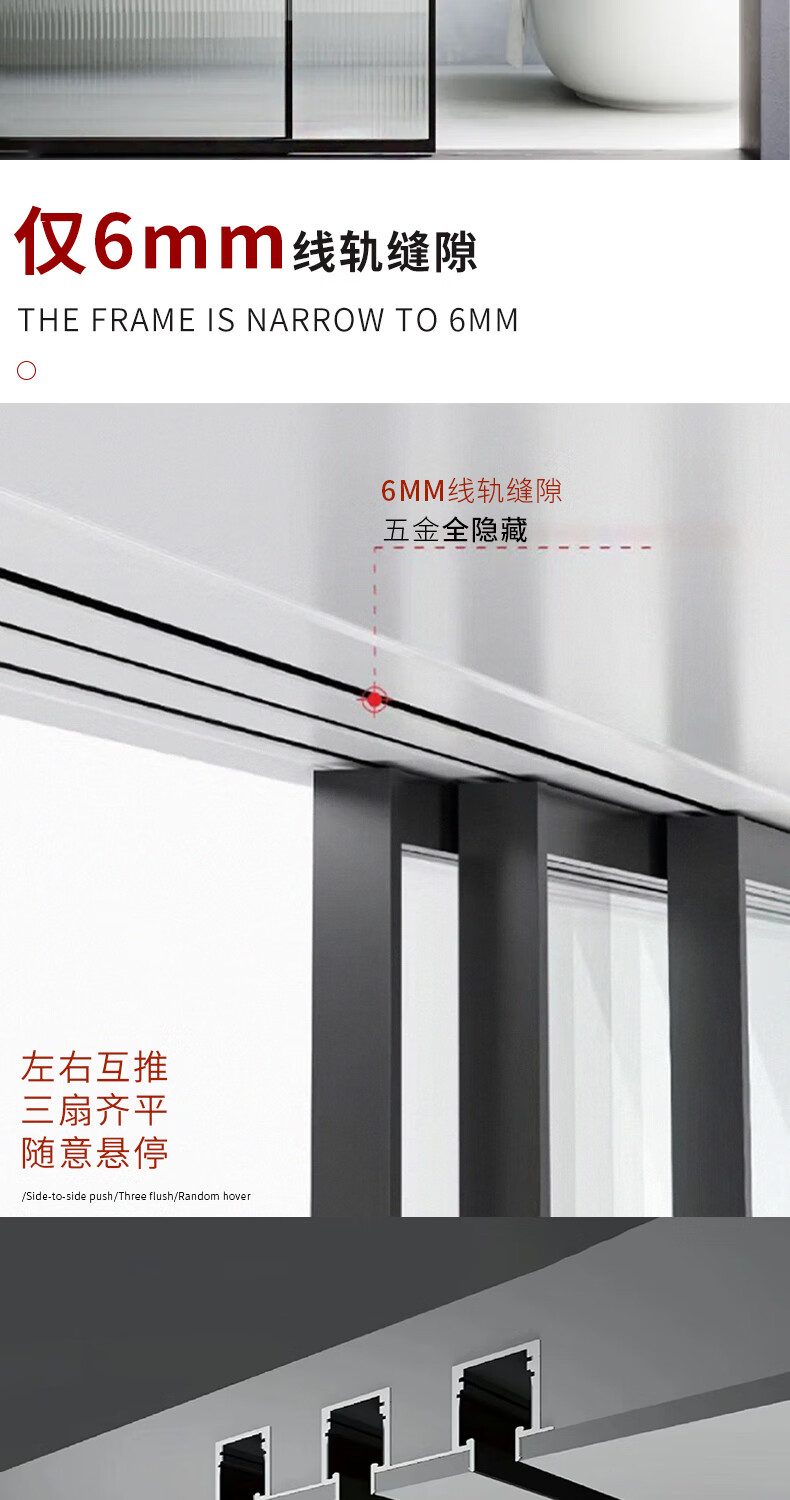 Mooke Perfect System Line Rail Three-Linkage Hanging Rail Sliding Glass Door Hidden Track Sliding Door Bedroom Door Kitchen Door Three-Linkage Hanging Rail (Plain Glass)/