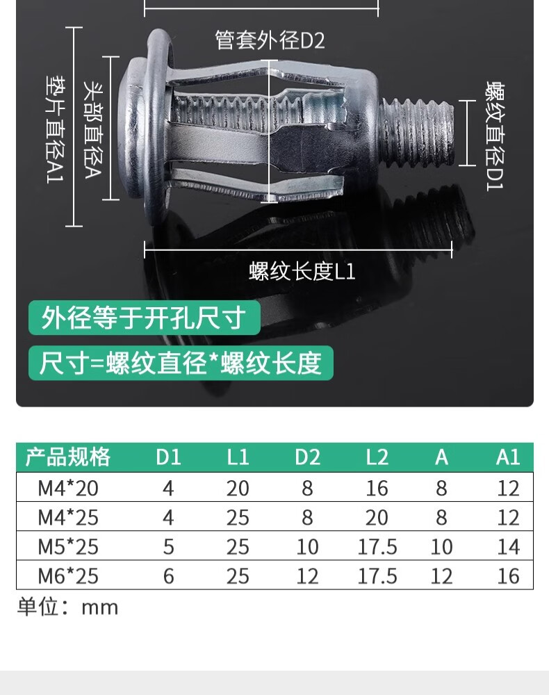 LSNUO petal expansion screw nut rivet screw expansion bolt rubber plug hollow iron lantern bolt 4*20 petal type expansion screw-5 pcs