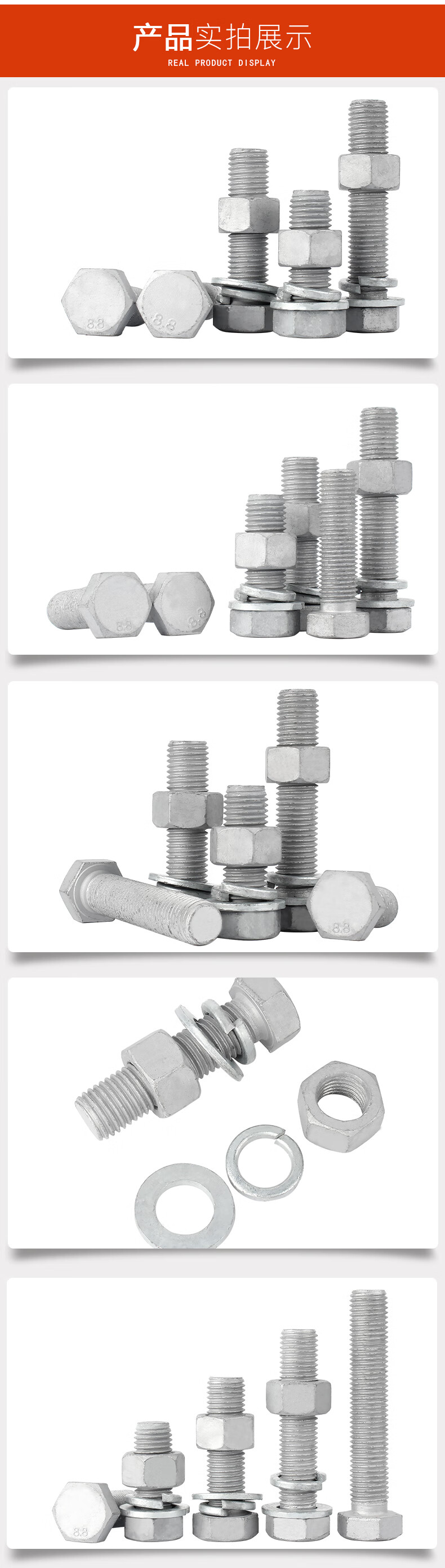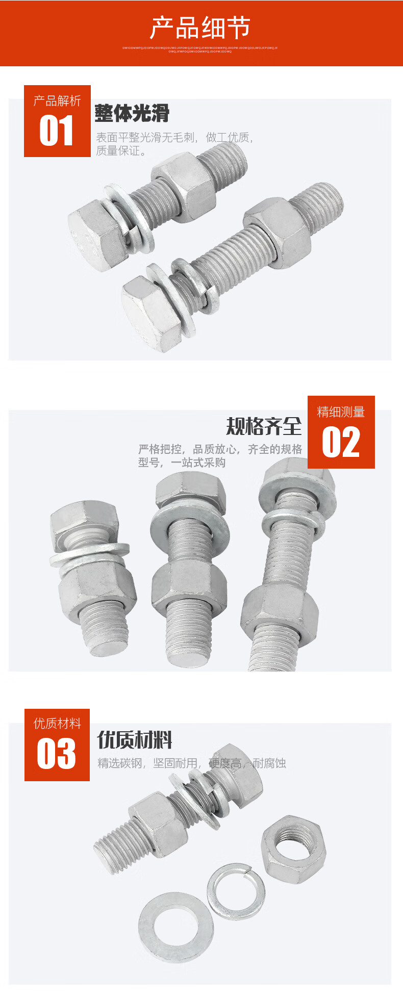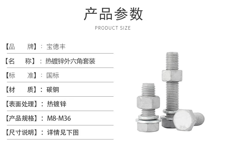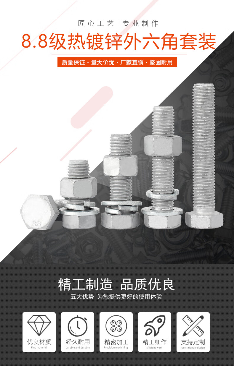 Baodefeng grade 8.8 hot-dip galvanized external hexagonal screws and nuts combination set high-strength iron tower hot-dip galvanized bolts national standard M8x25 10 sets