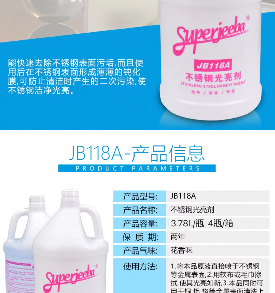 Baiyun Jieba JB-118A stainless steel brightener vat elevator cleaning and maintenance brightening care oil cleaning fluid 4 bottles (full box)-JB118A stainless steel brightener