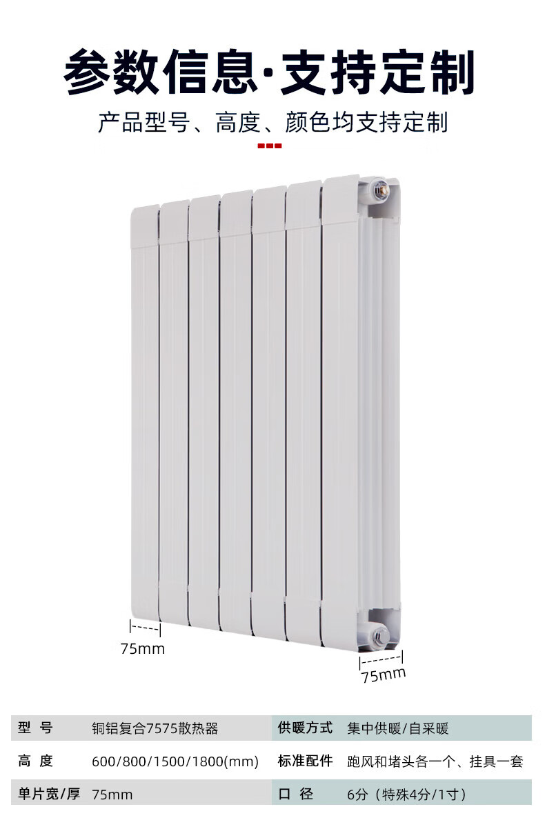 Ou Nuan radiator copper-aluminum composite 75X75 radiator home living room bedroom wall-mounted centralized/self-heating water heating 600mm*6 columns 1800mm