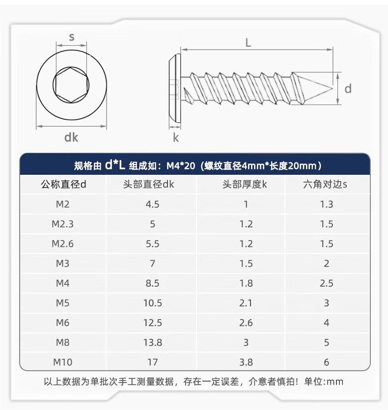 Fengji 304 stainless steel beveled inner hexagonal self-tapping screws large flat head thin head furniture screws M2M3M4M5M6-M10 M6*30-5