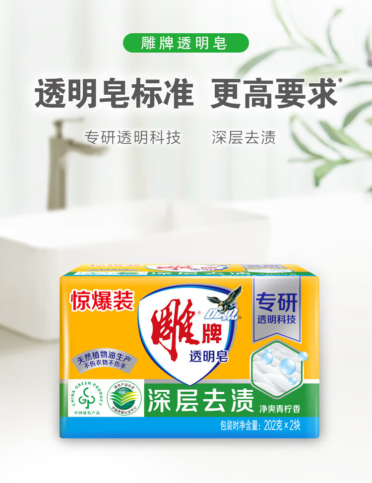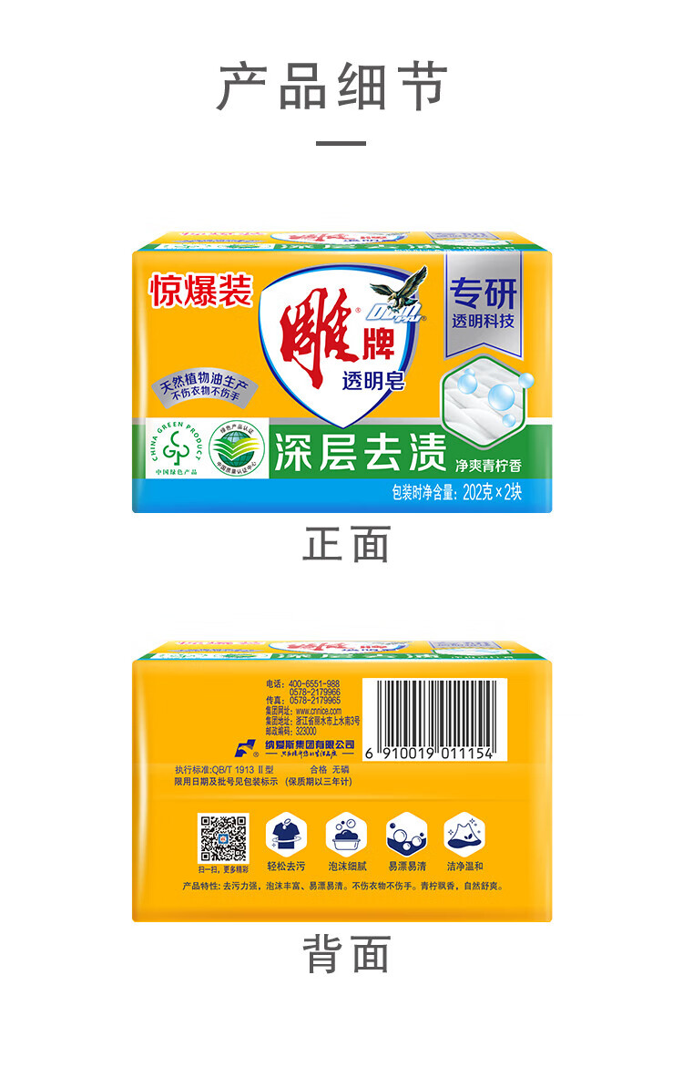 Diao Brand Soap Transparent Soap Laundry Soap Large Pack 202g Lime Fragrance Laundry Soap Cleaning Soap Family Pack Affordable Pack 202g*6 Blocks