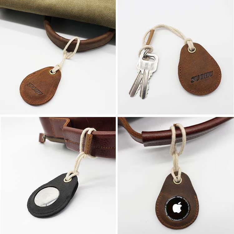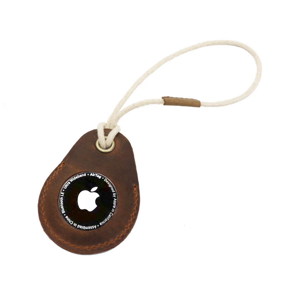LVZHUYE applicable airtag protective case genuine leather lanyard creative leather case Apple airtags pet children anti-lost positioning anti-lost protective case airtag case crazy horse leather light brown