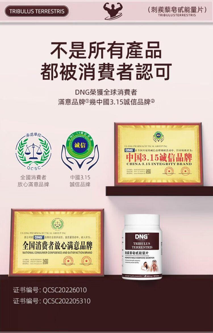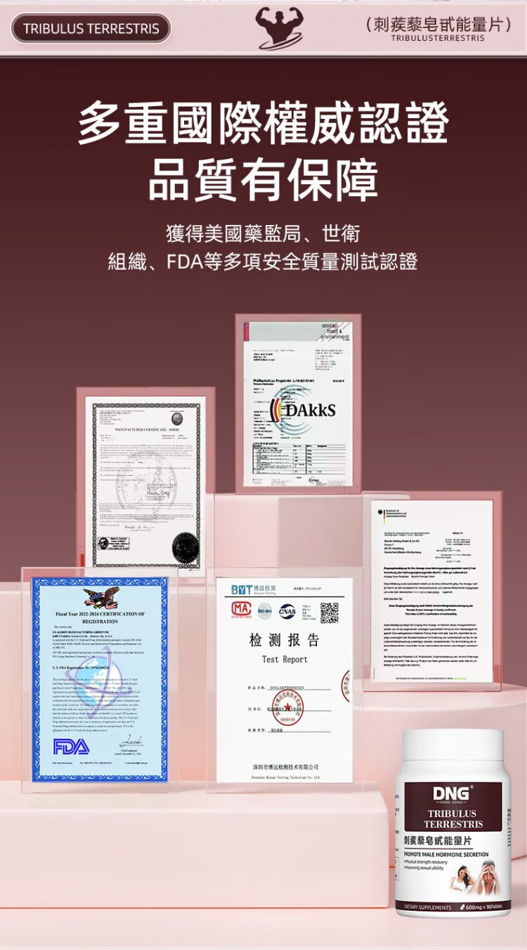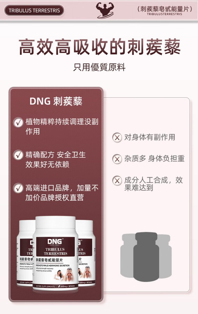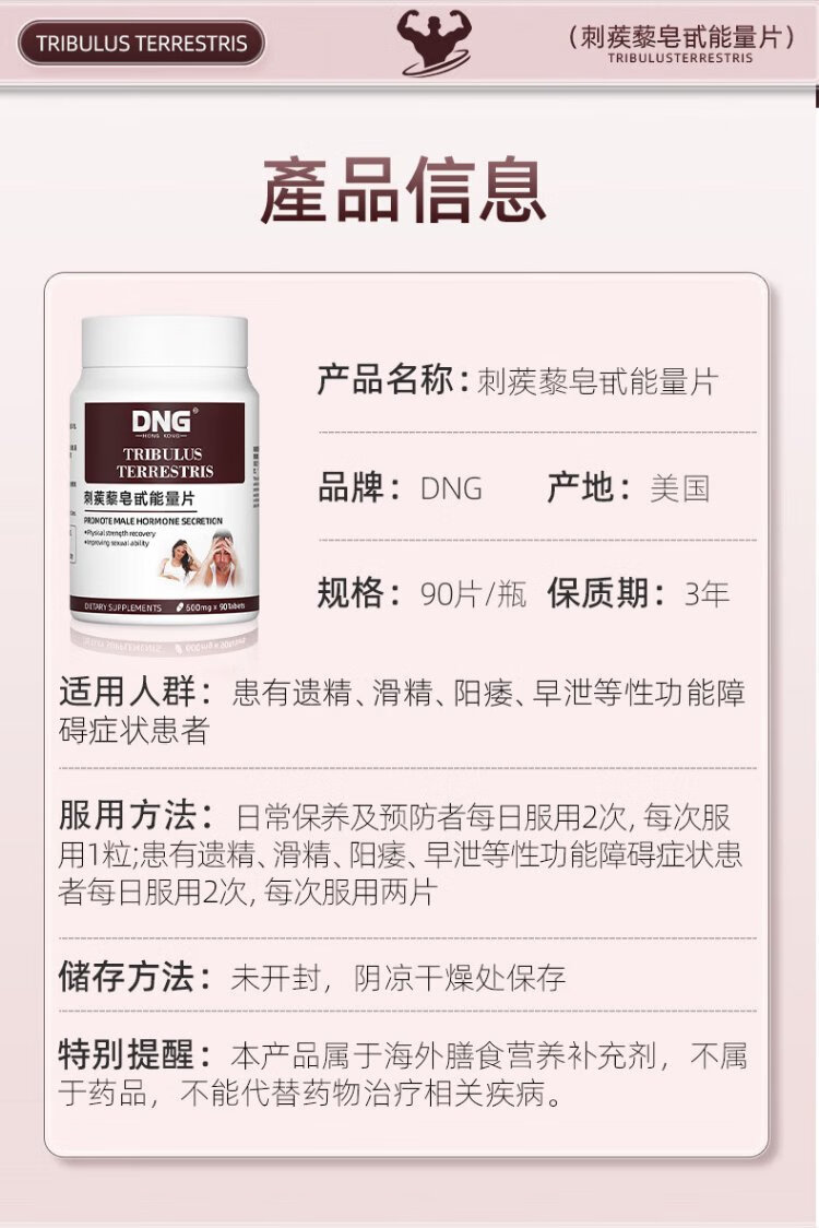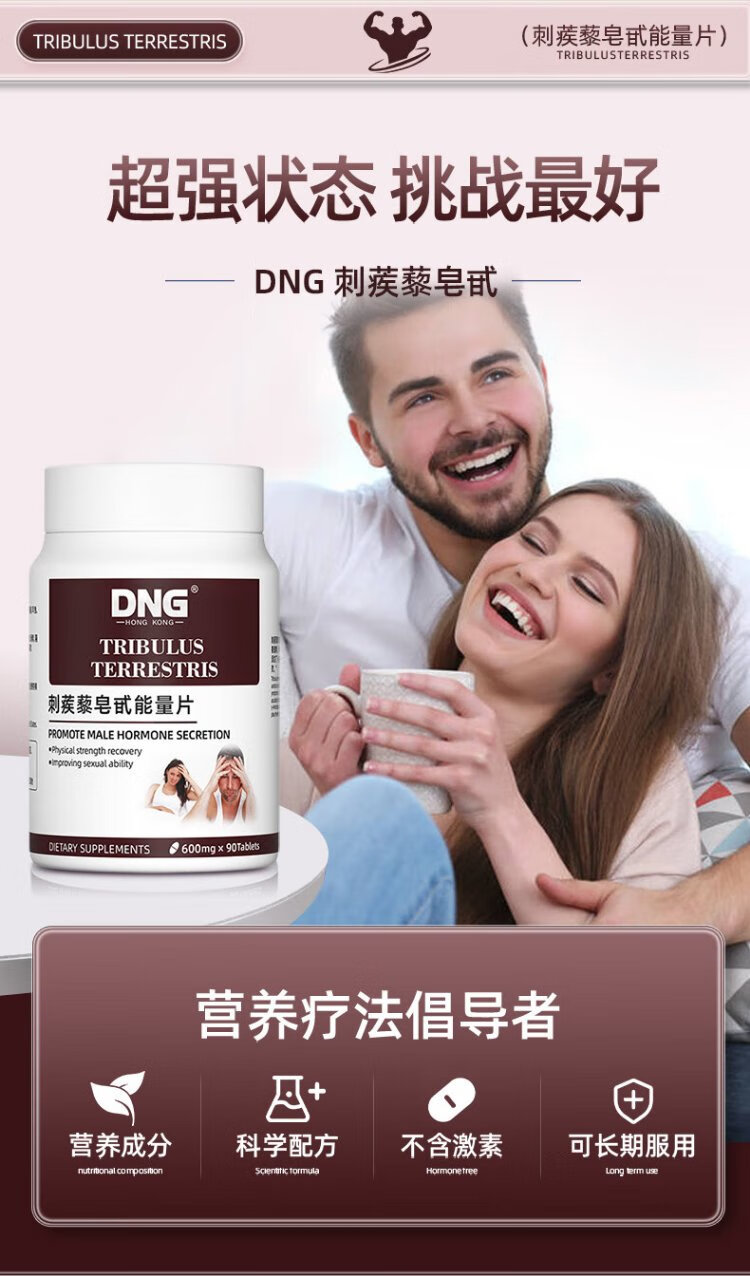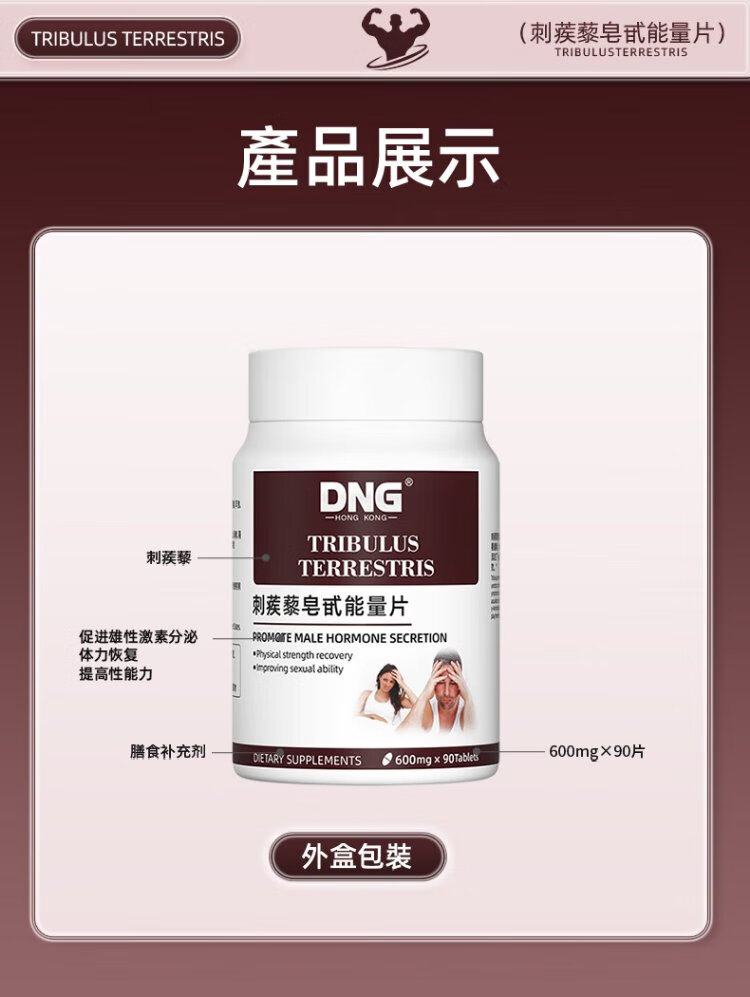 DNG imported Tribulus terrestris saponin undecanoic acid energy male testosterone booster kidney and yang strengthening Tribulus terrestris extract thickening and enlargement a bottle of trial pack 90 capsules