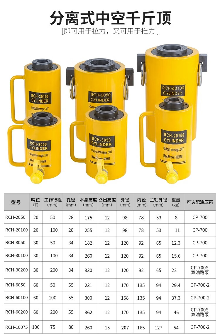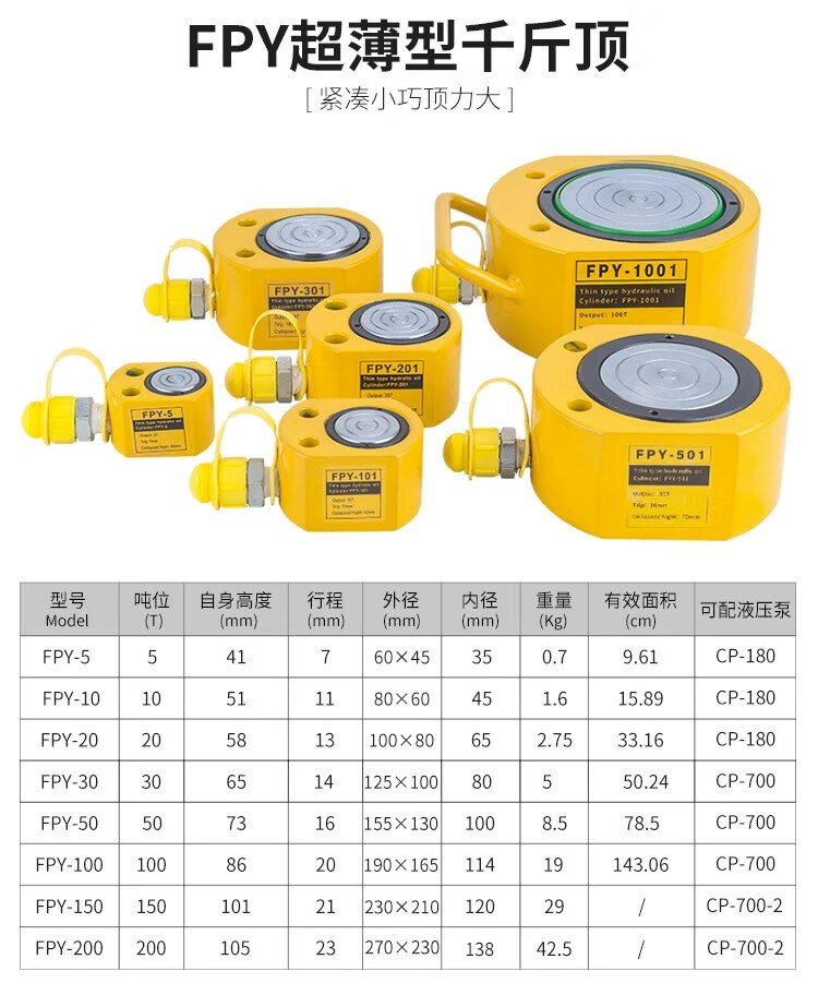MNZe ultra-thin hydraulic jack separate jack hydraulic cylinder 5T20T30T50T100T200 tons extended type 30 tons ultra-thin stroke 14mm with CP-700 pump