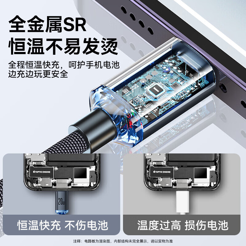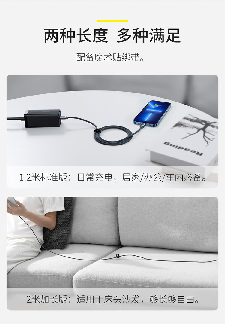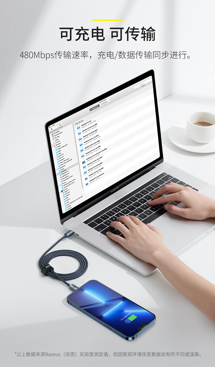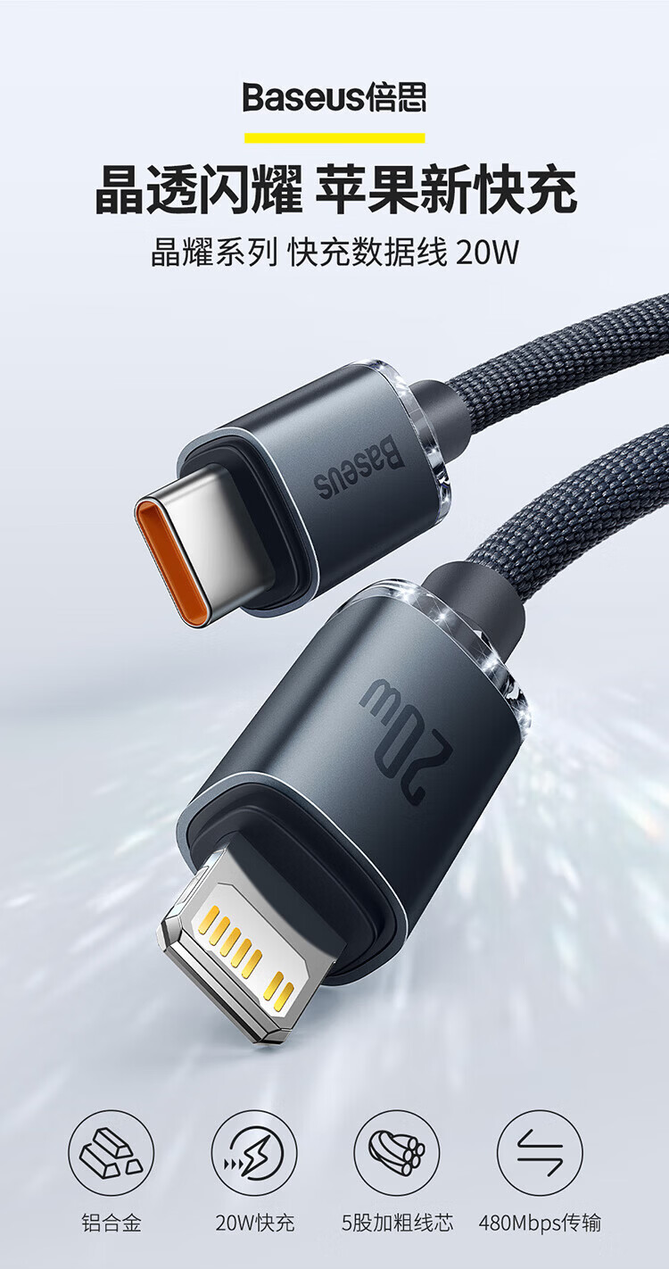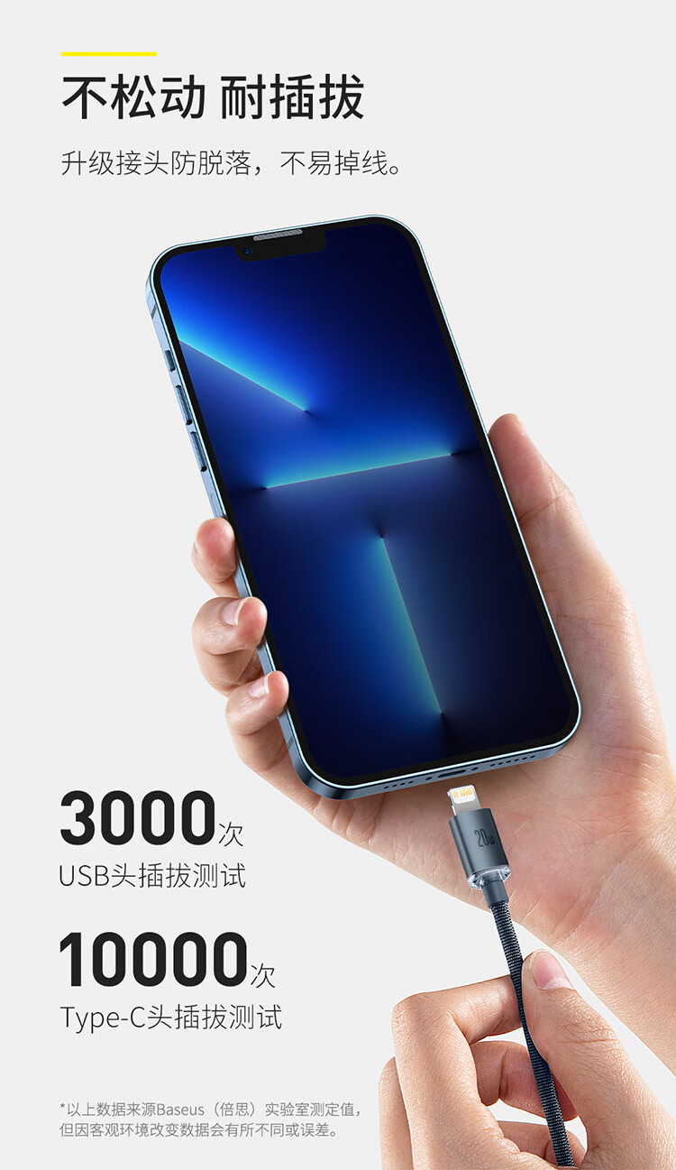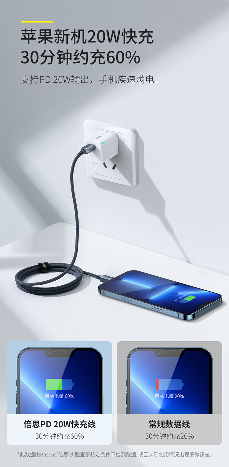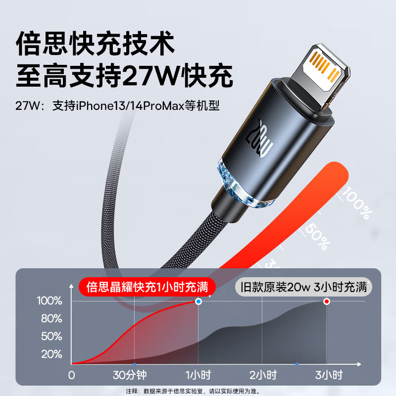 Baseus Apple charging cable PD20/27W fast charging data cable Type-C extended suitable for iPhone14Pro Max/13/12/11/XR/8 mobile phone car PD20W fast charging without damaging the machine | Black 1.2 meters 1m or more