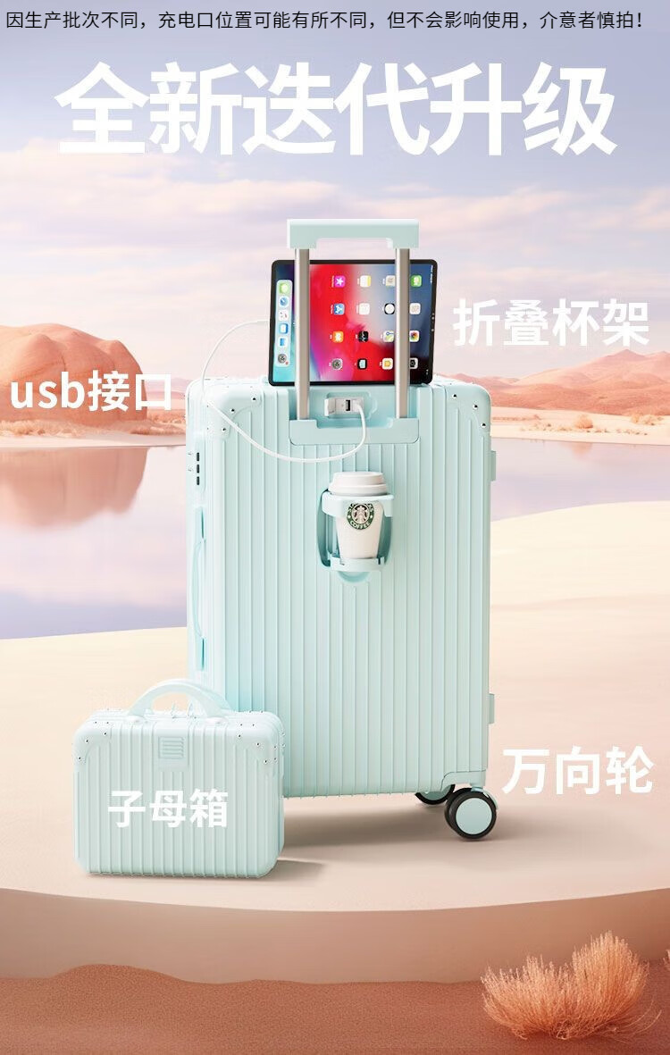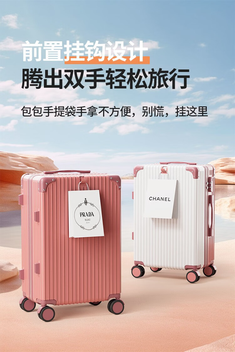 Kangaroo (KANGAROO) multifunctional suitcase large capacity trolley case men's large suitcase password box women's large suitcase boarding case B607 rose + white multi-function - single box 28 inches long-distance travel
