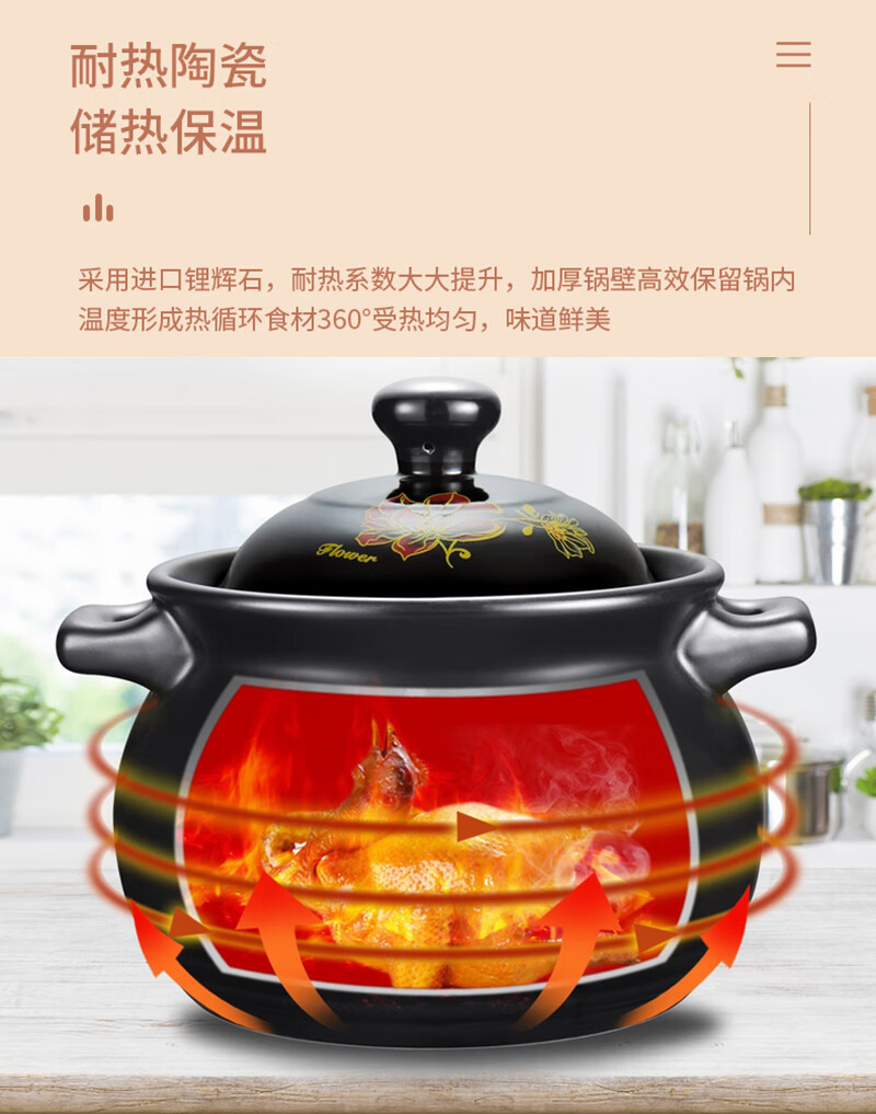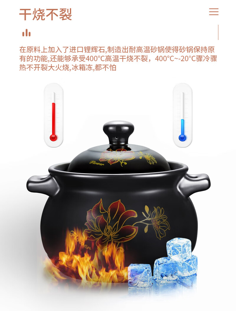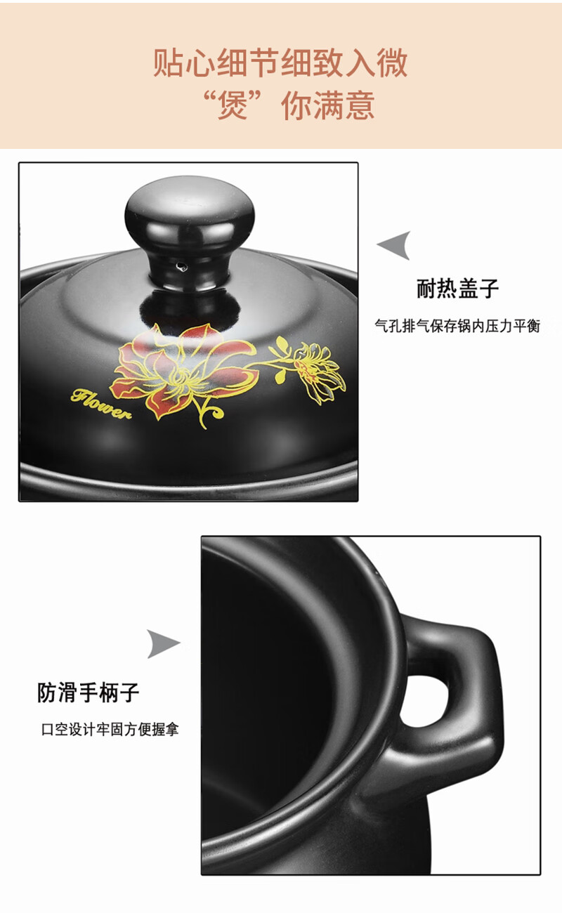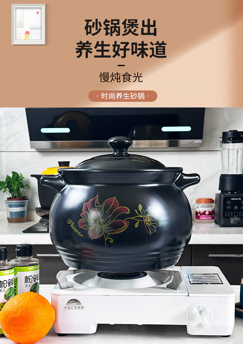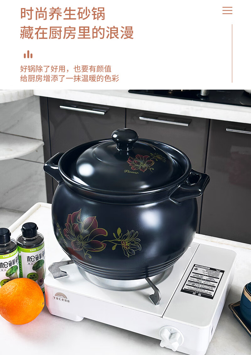 Yalusen Casserole Household Open Fire High Temperature Resistant Soup Pot Clay Clay Pot Gas Gas Stew Pot Large Capacity Thickened Chinese Retro Golden Lotus Recommended for 3-5 people 4L