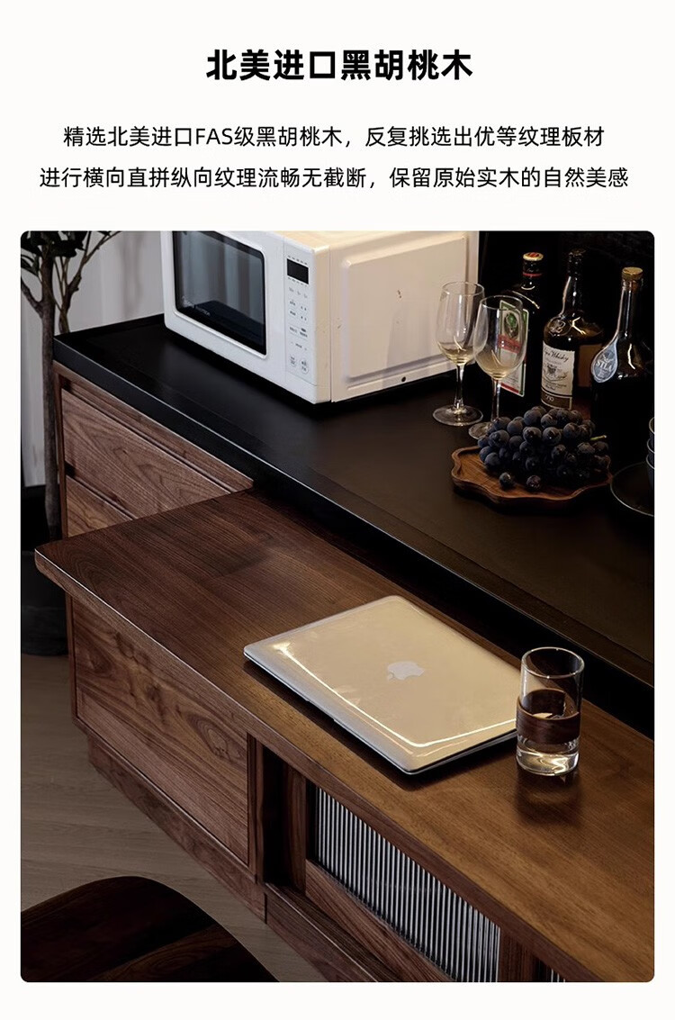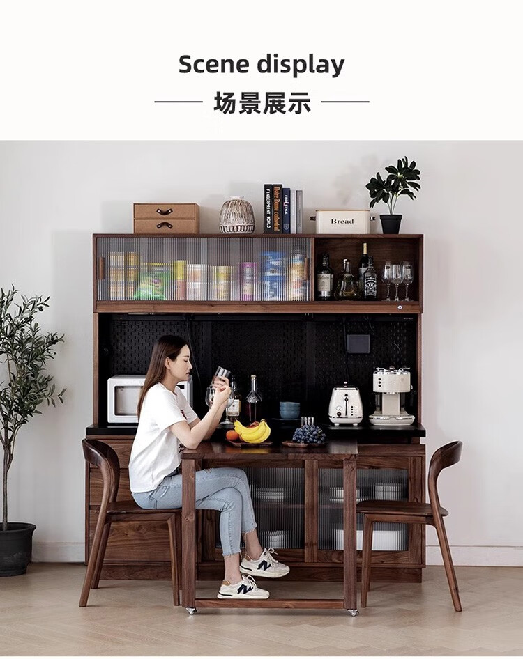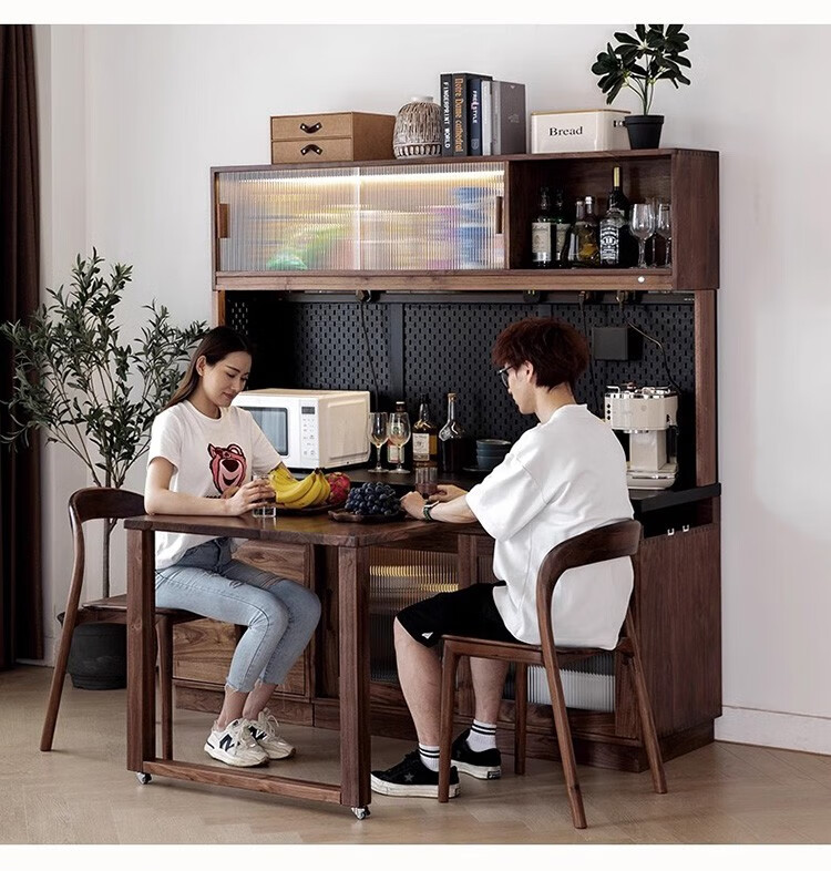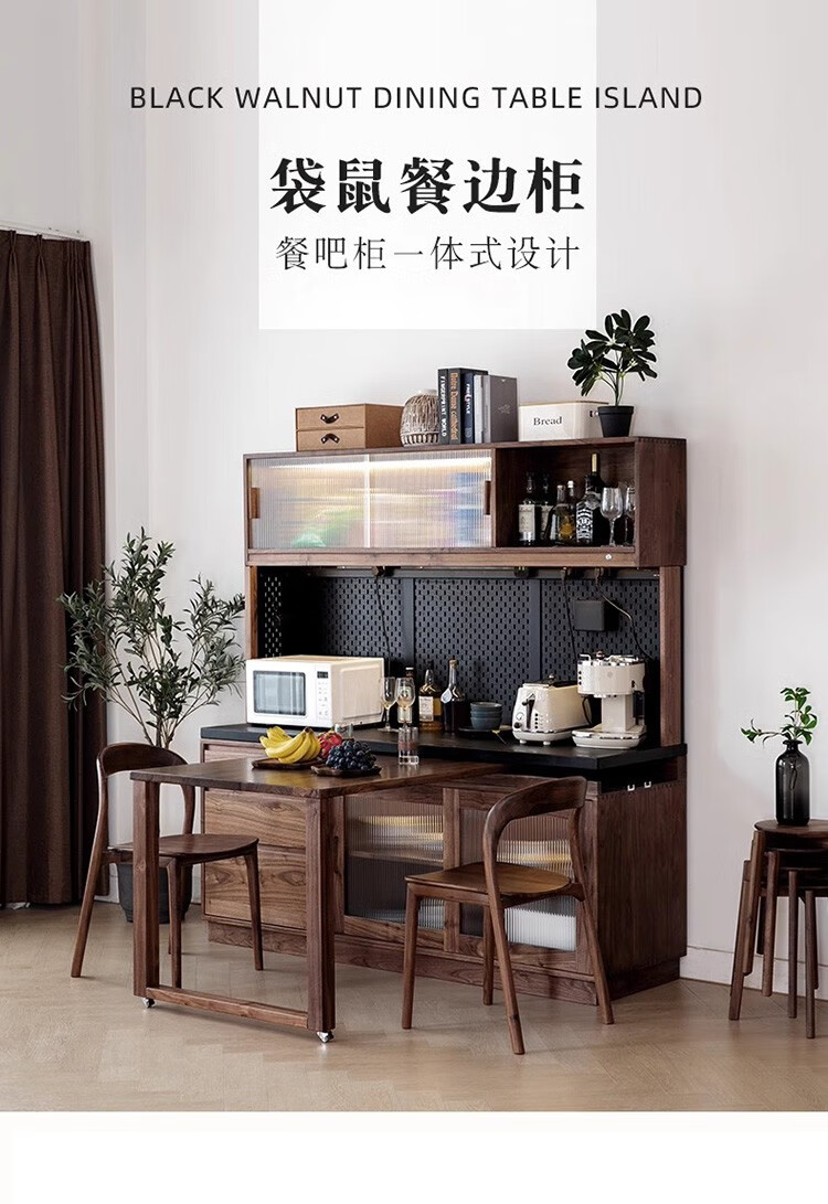 Soran North American black walnut sideboard dining table integrated wall-mounted rotatable folding restaurant storage cabinet slate storage cabinet black walnut cabinet 1.88 meters (combination cabinet)