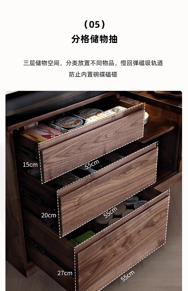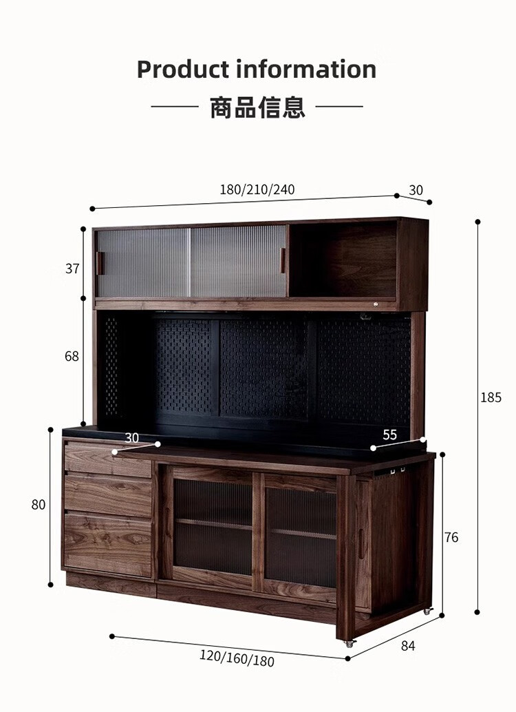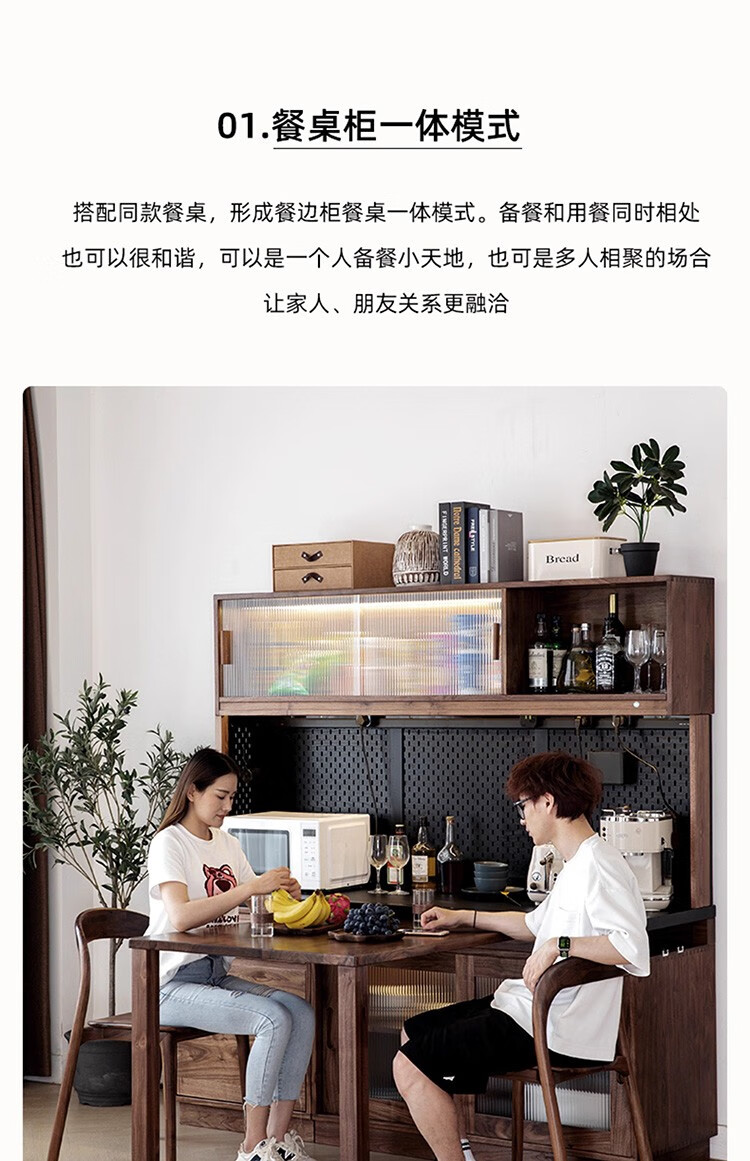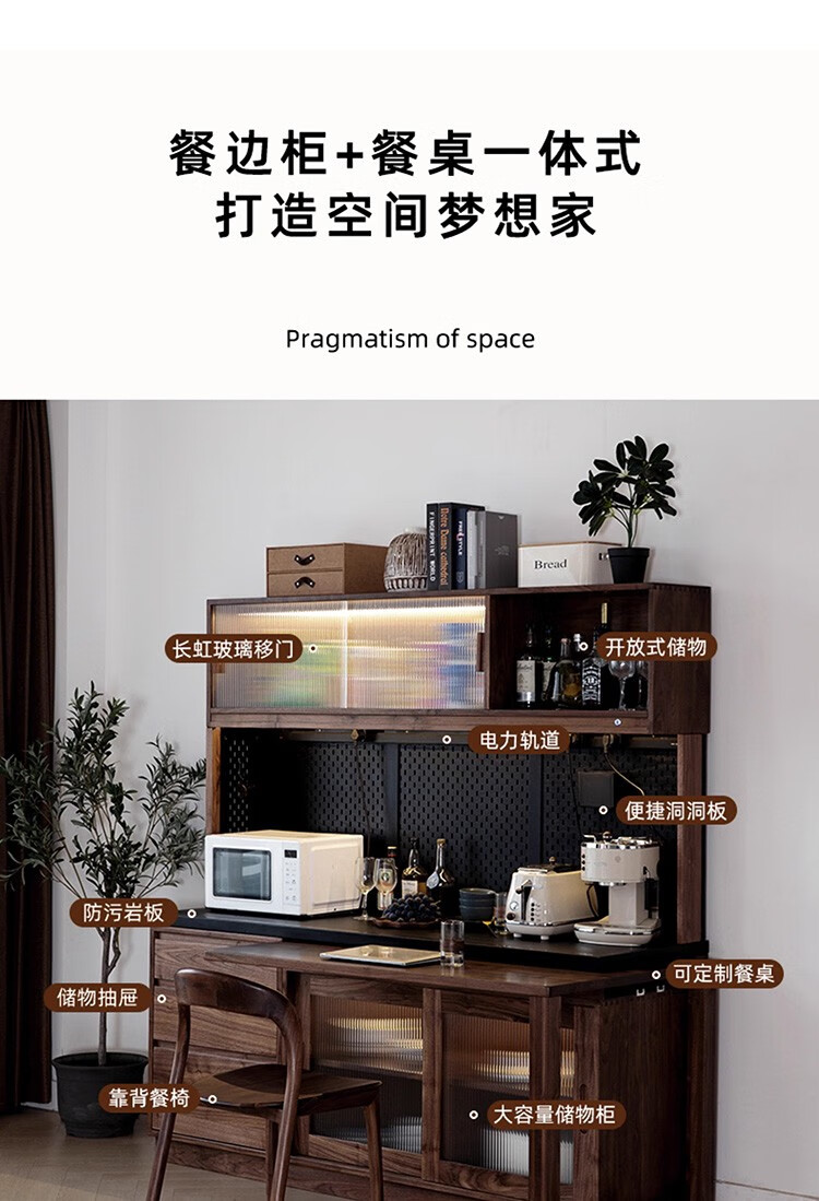 Soran North American black walnut sideboard dining table integrated wall-mounted rotatable folding restaurant storage cabinet slate storage cabinet black walnut cabinet 1.88 meters (combination cabinet)