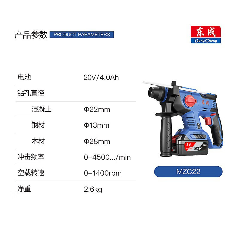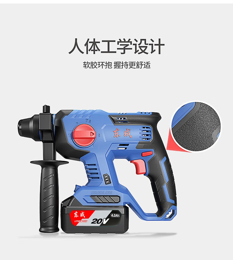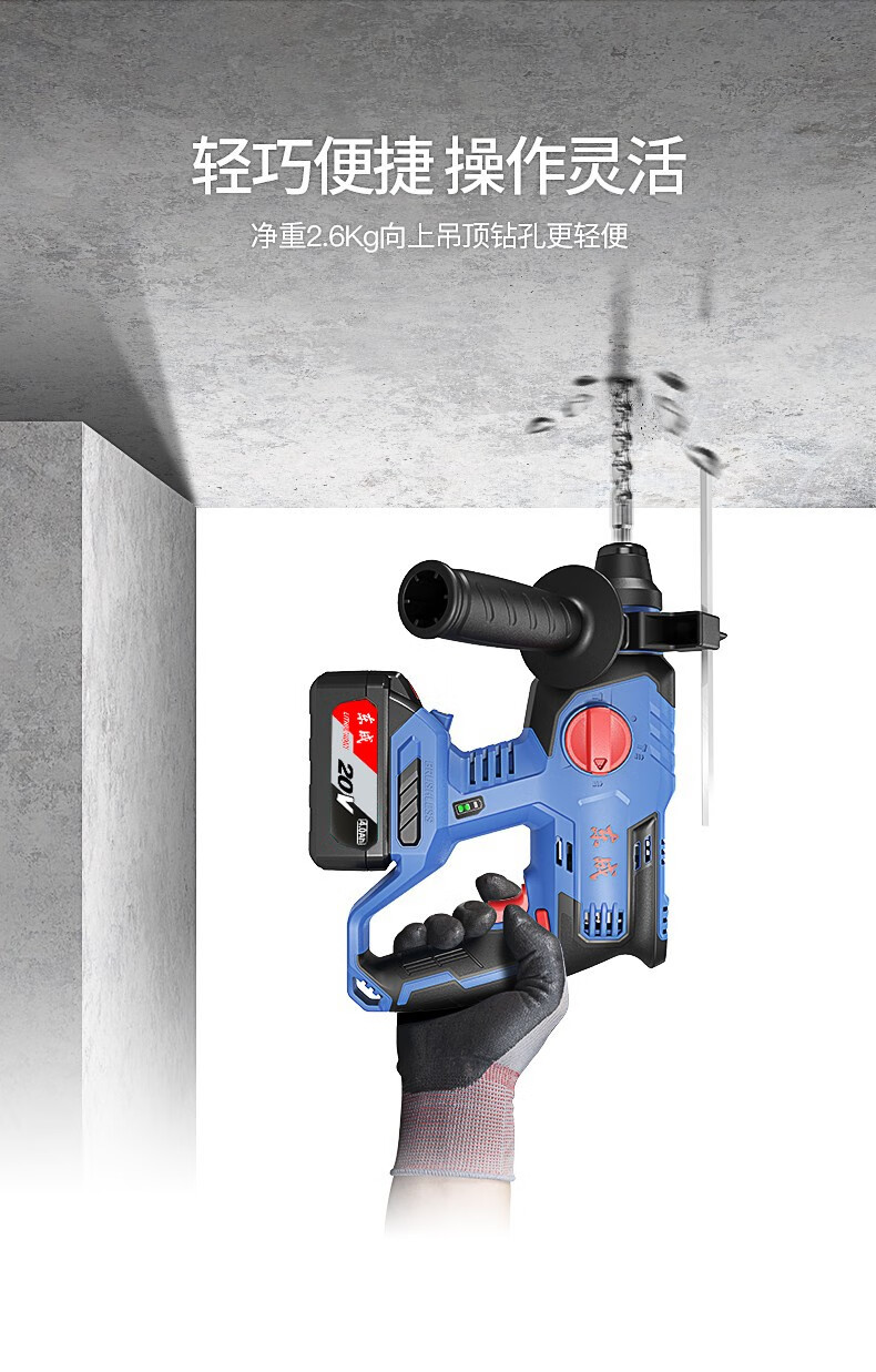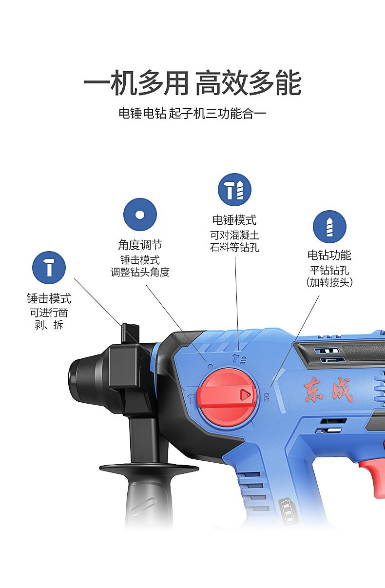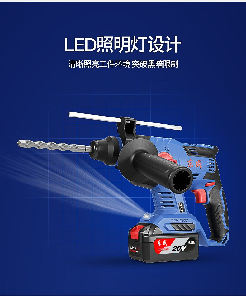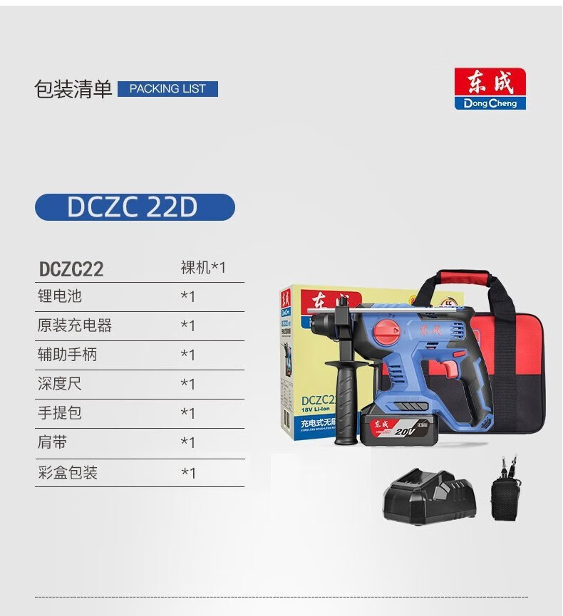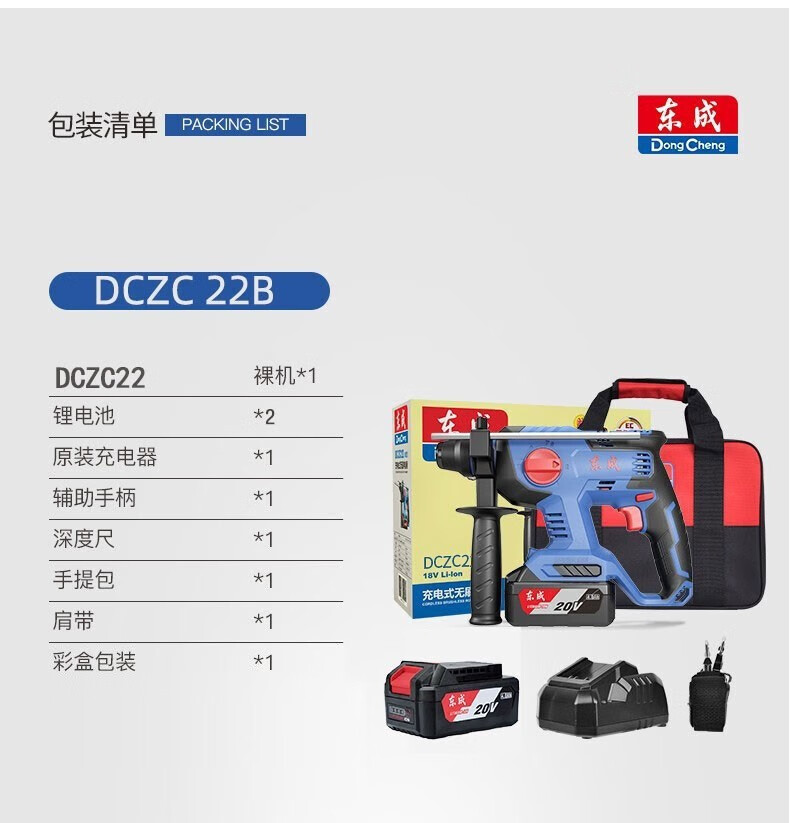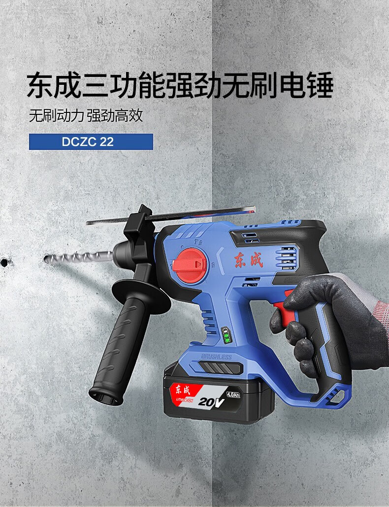 Dongcheng 20V brushless rechargeable electric hammer DCZC22B lithium electric hammer impact drill electric drill electric pick three-purpose Dongcheng power tool electric hammer/two-speed electric drill/angle grinder 2 electric 1 charge