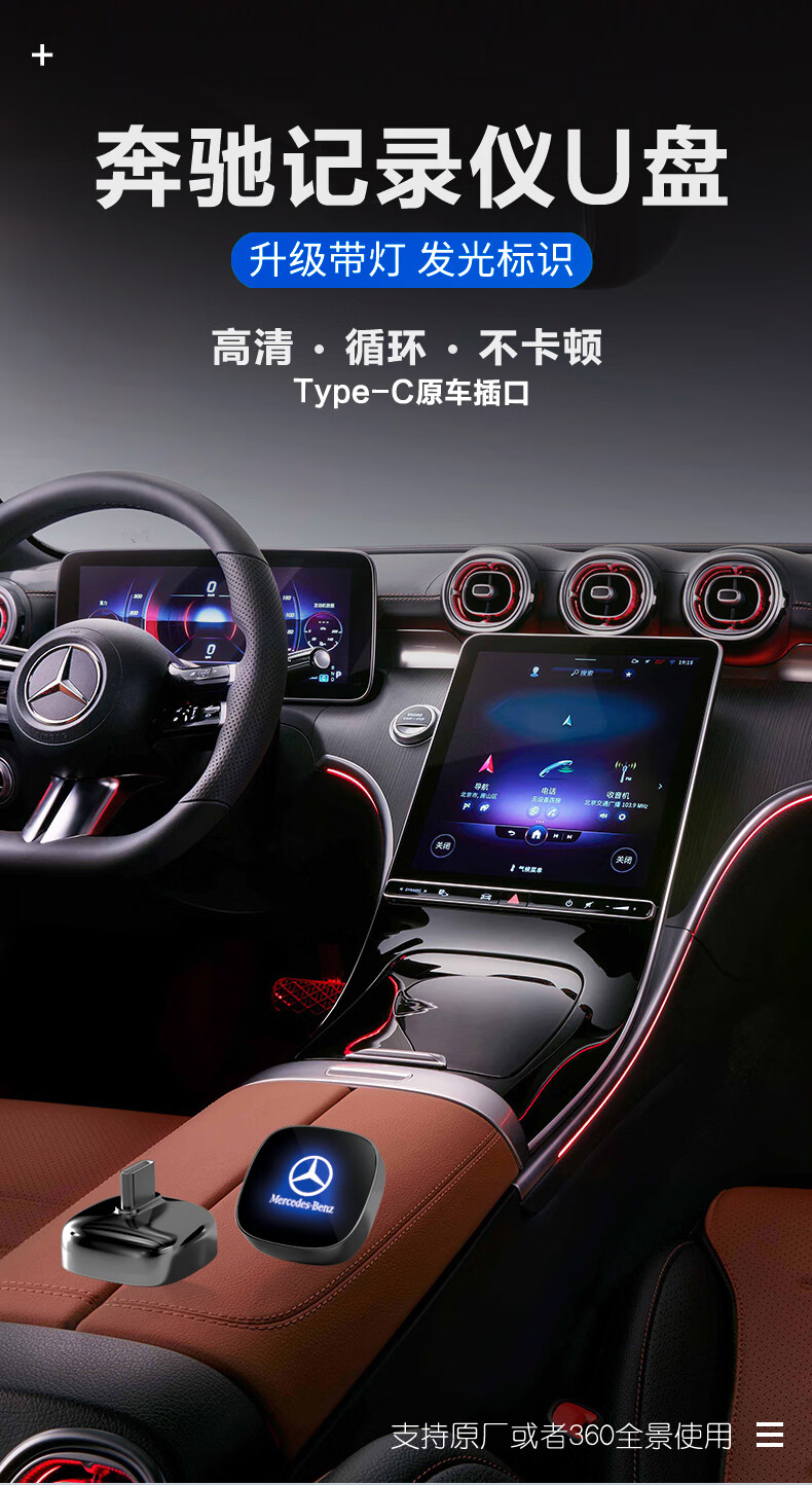CLCEY is suitable for Mercedes-Benz C260L driving recorder U disk Maybach S480S-class S400S450 special GLC300L Mercedes-Benz special high-definition original factory without lag 32G