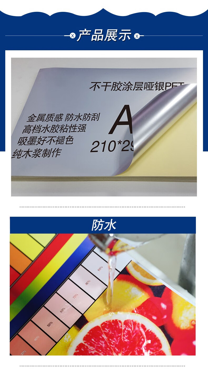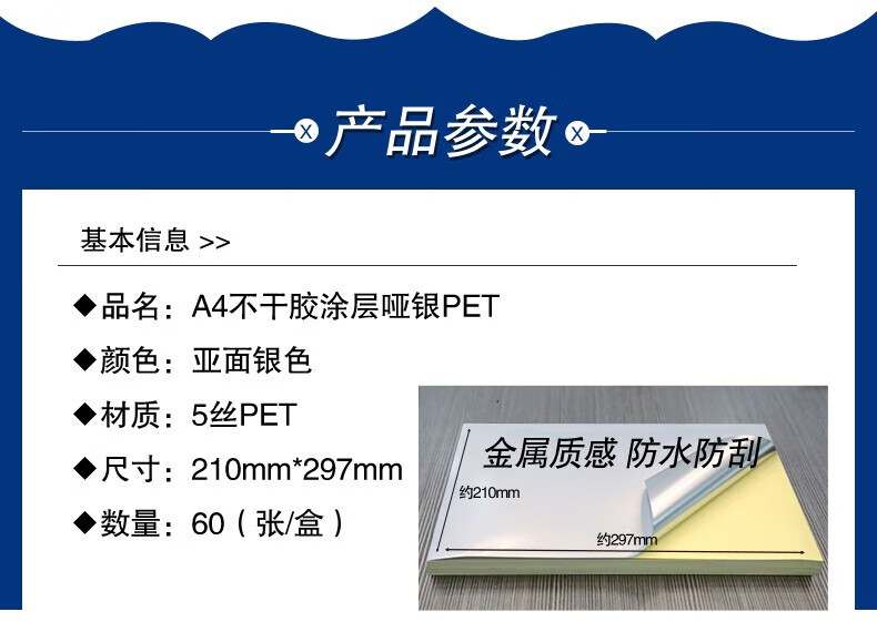Customized A4 coated matte silver self-adhesive self-adhesive silver matte silver PET waterproof laser label sticker with adhesive backing A4 matte silver laser PET 5 silk water glue 60 sheets