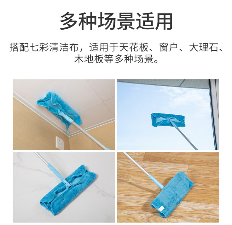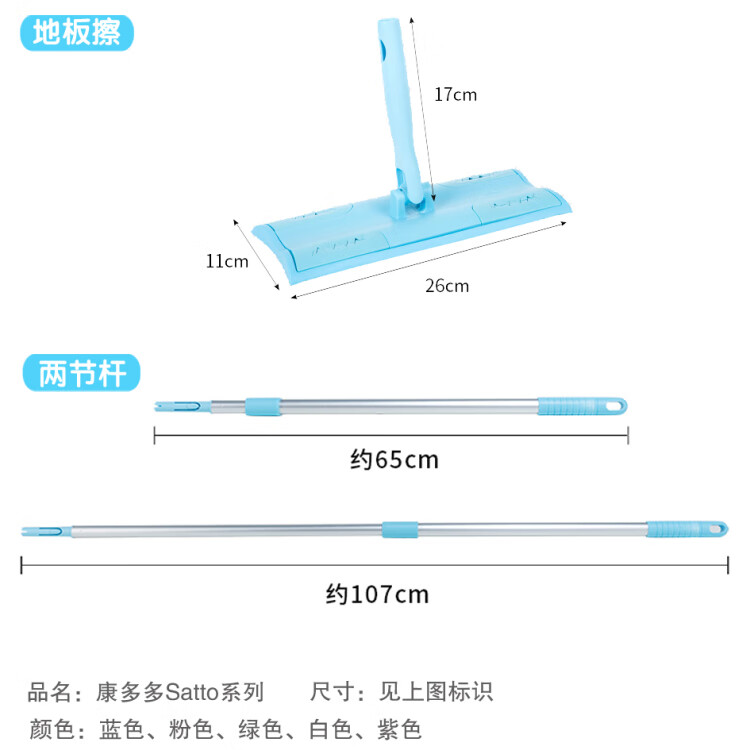 Kangduoduo is so generous and happy to come home. Removable telescopic two-section thickened flat-panel housekeeping cleaning mop rod. Blue two-section thickened pole + floor wipe. Free Kangmao.
