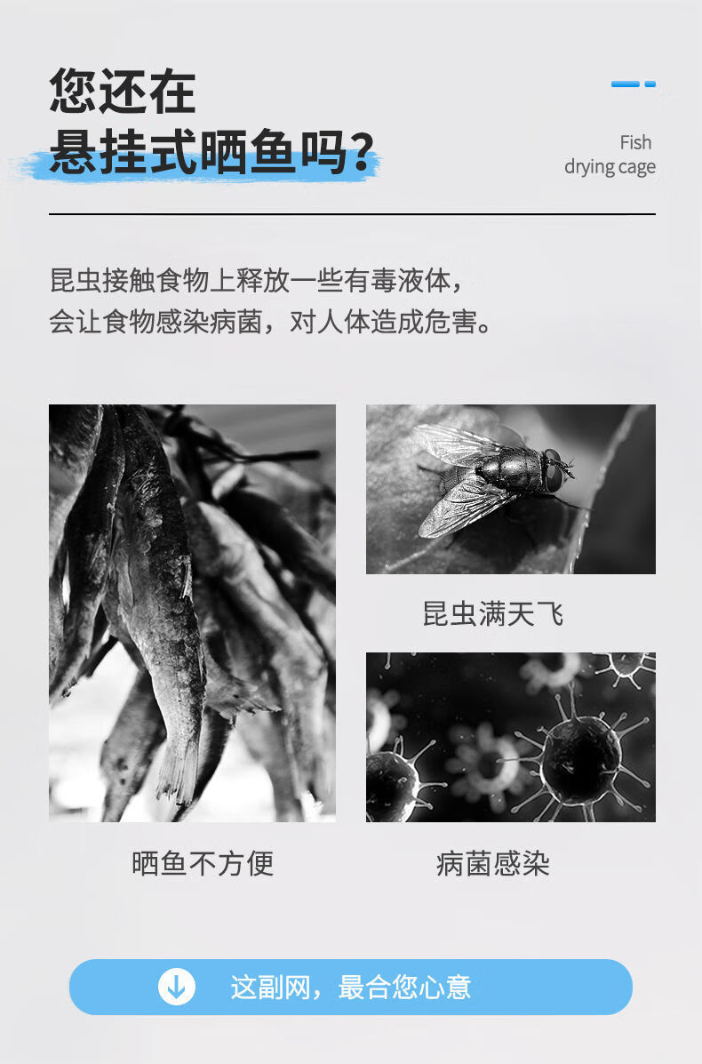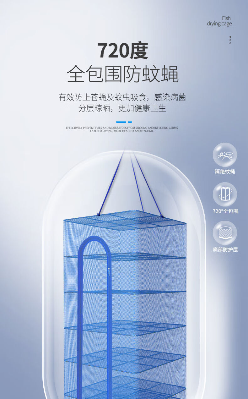 Dile Cat Cooling Food Mesh Screen Insect-proof Basket Drying Utensil Foldable Dry Goods Net Meat Drying Cover New Style Tic-Tac-Toe Skeleton 3-layer 505065 Hanging Ring