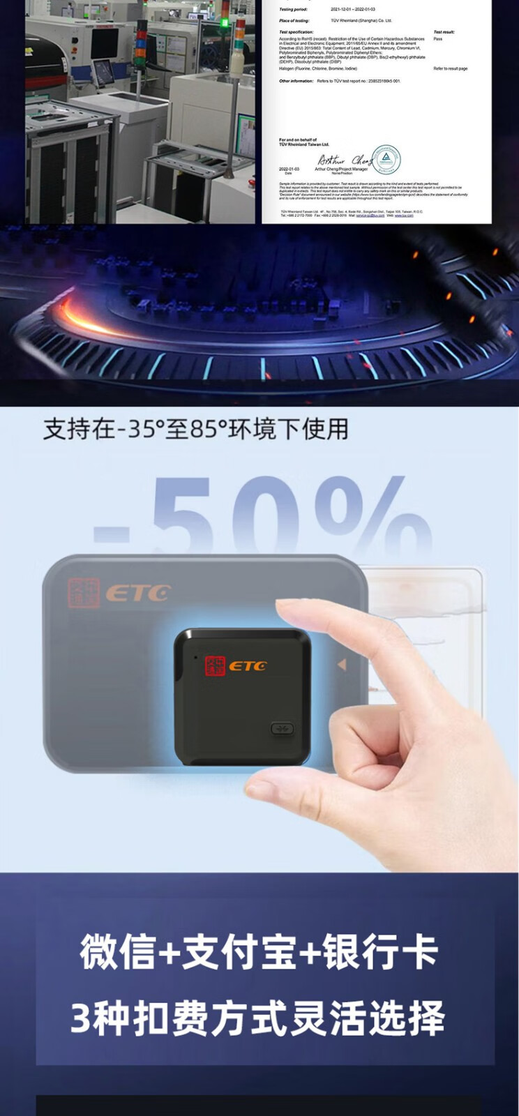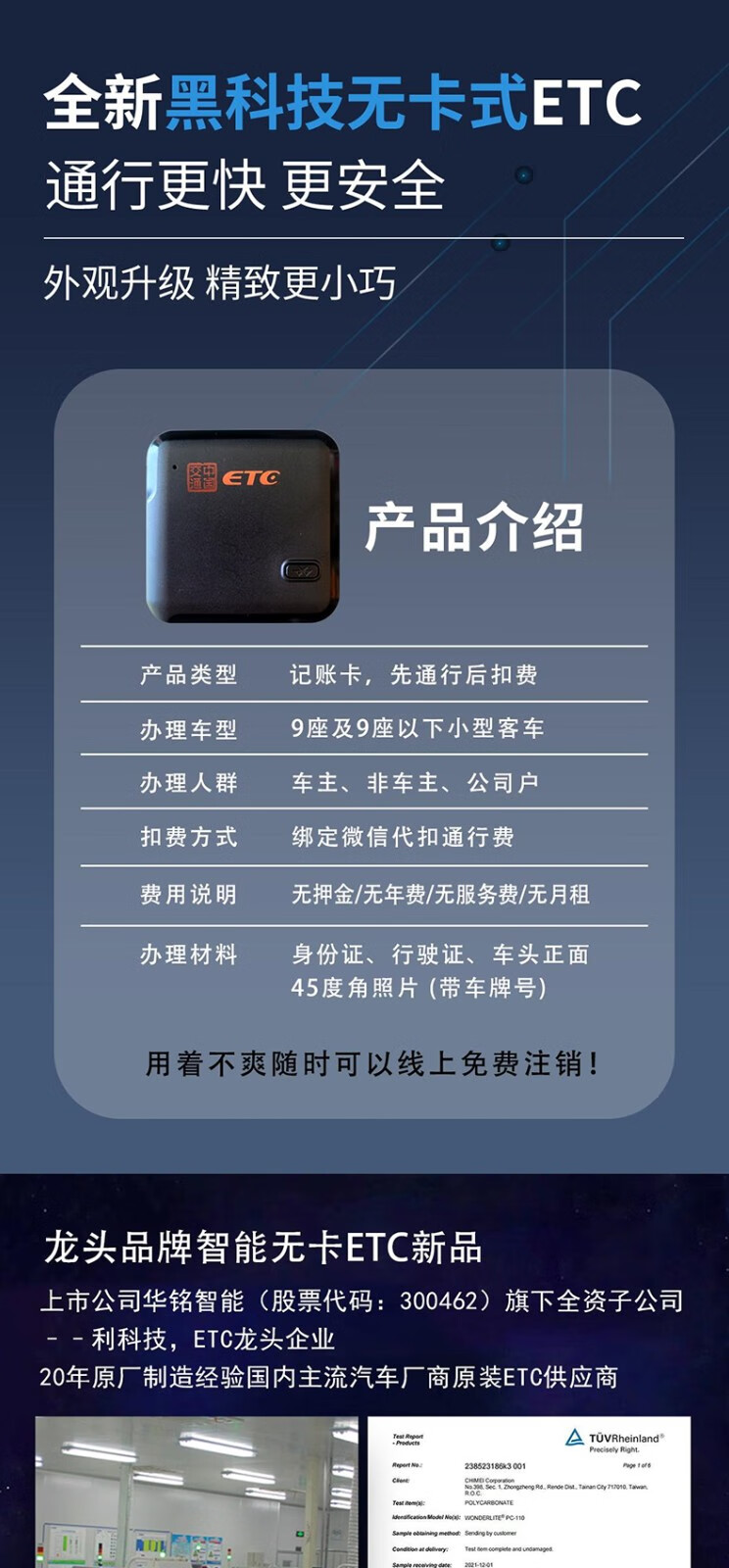 Huansi etc. are free of charge, no service fee, small car equipment, WeChat cardless, hidden etc., universal at national high speeds, small cars without card - WeChat deduction - supports changing license plates